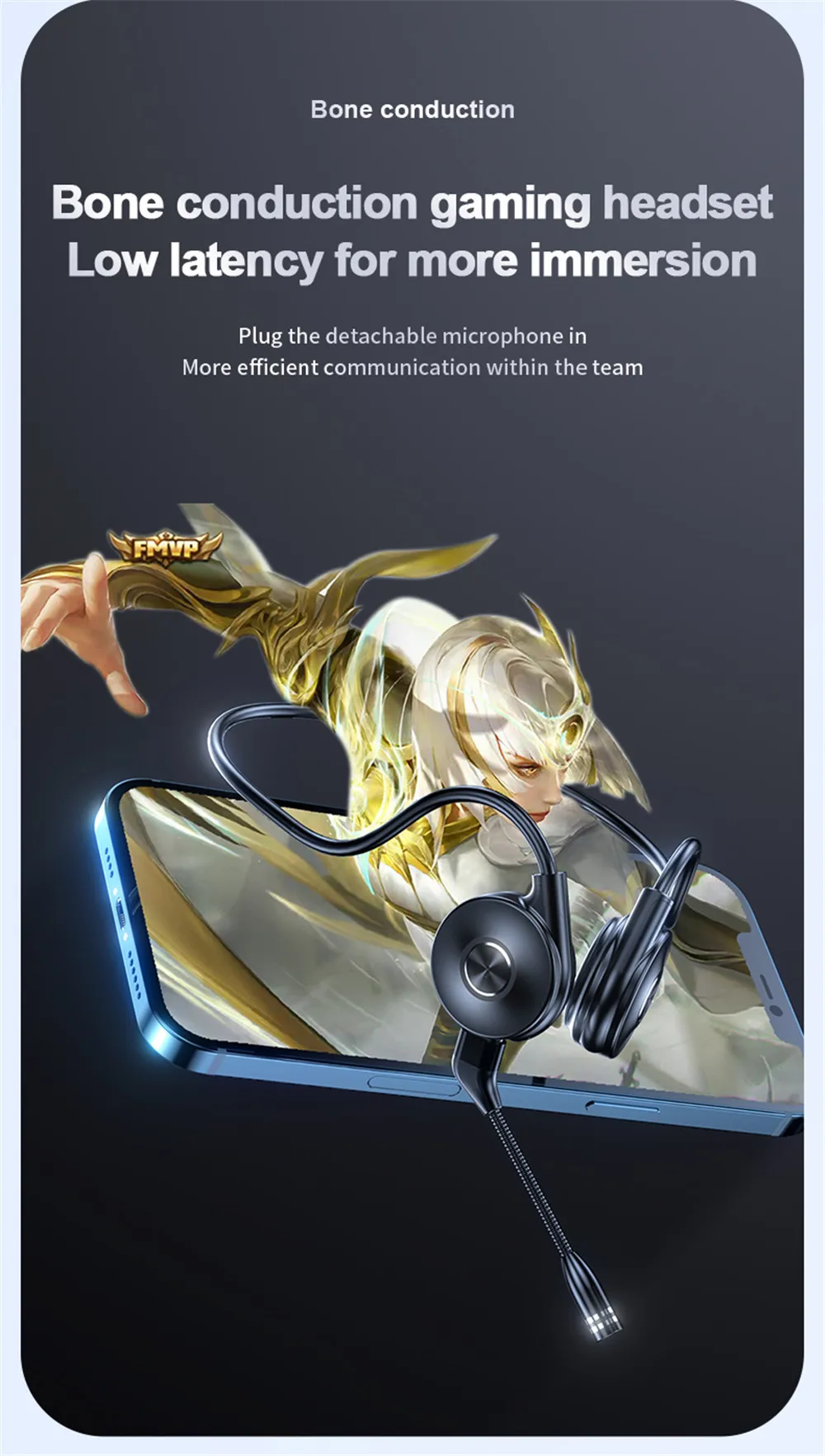 Comprar Kebidumei-auriculares inalámbricos para juegos, audífonos de baja latencia, conducción ósea, Bluetooth, deportivos, para correr, impermeables