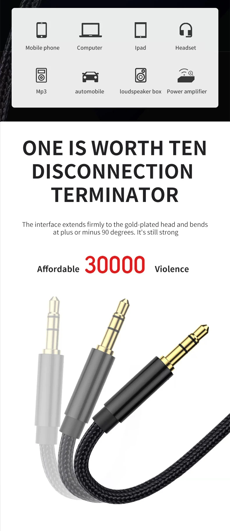 Kebiss Jack 3,5 Cable de Audio 3,5mm línea de altavoz Cable auxiliar para iPhone 6 Samsung Galaxy s8 auriculares de coche Xiaomi Redmi 4x conector de Audio
