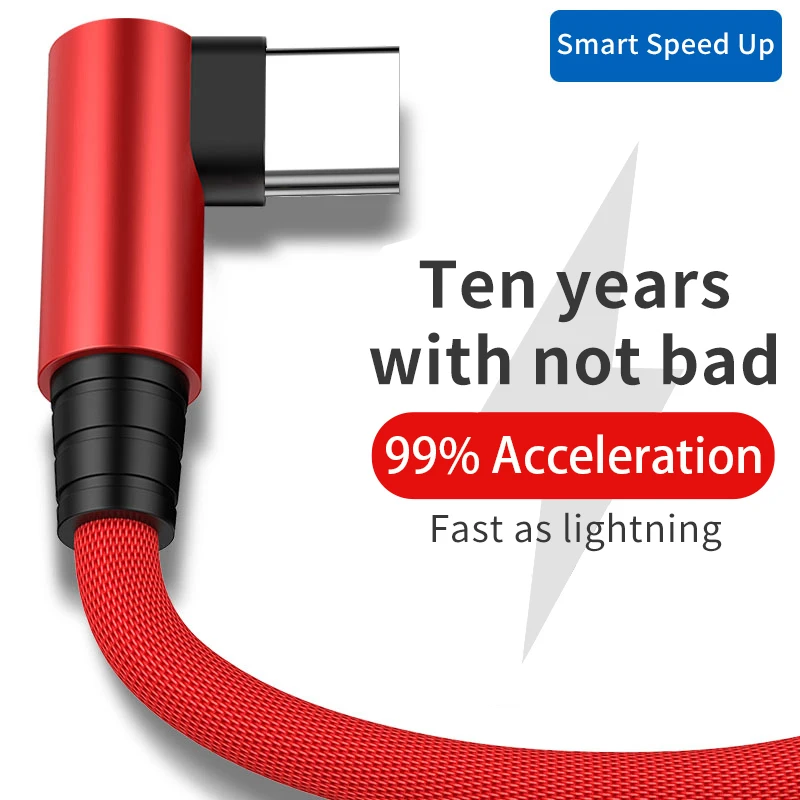 Comprar Kebss-Cable Usb tipo C de 90 grados, accesorio de carga rápida para teléfono Xiaomi, Huawei, Oppo Vivo, 3 uds.