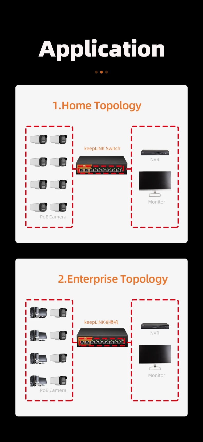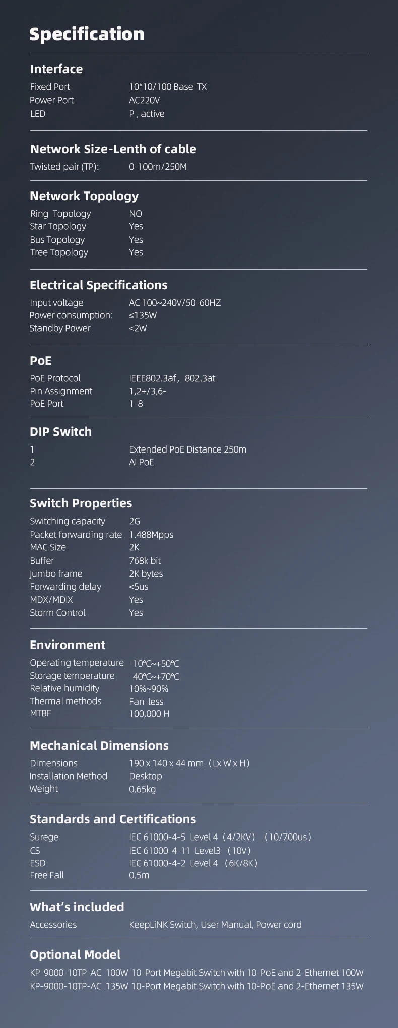 Comprar KeepLiNK Conmutador Ethernet Megabit de 10 puertos con 8-PoE y 2-RJ45 para enlace ascendente Plug and Play no administrado
