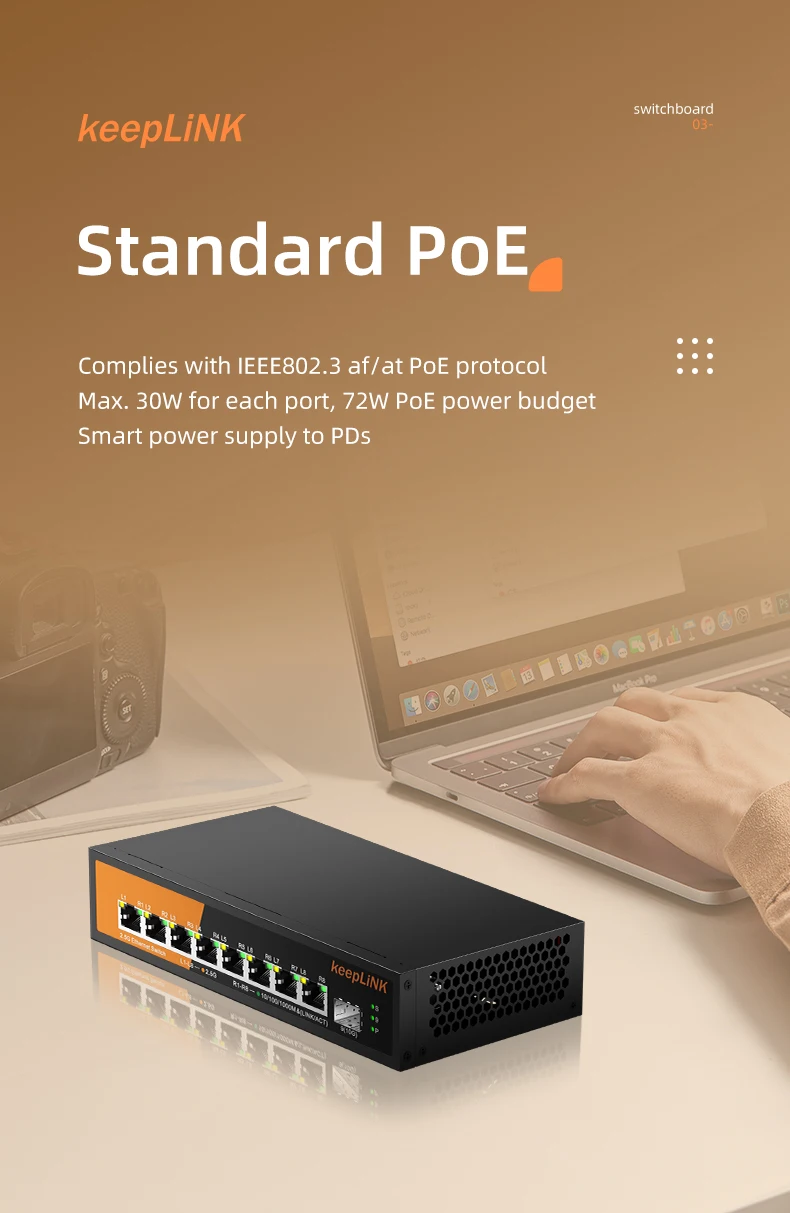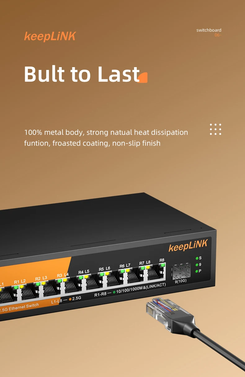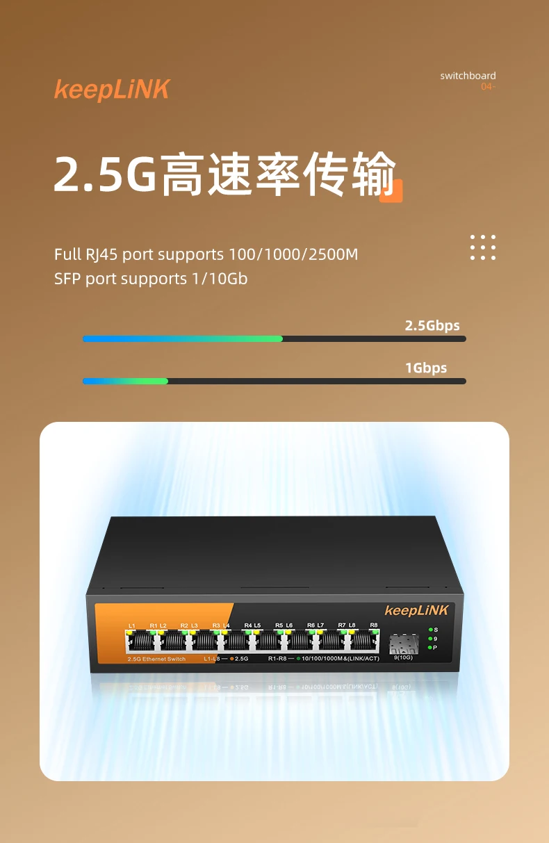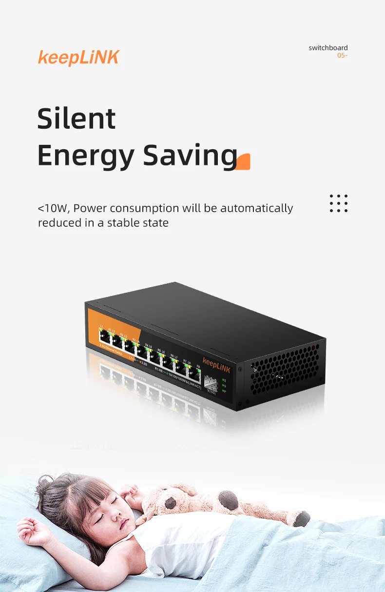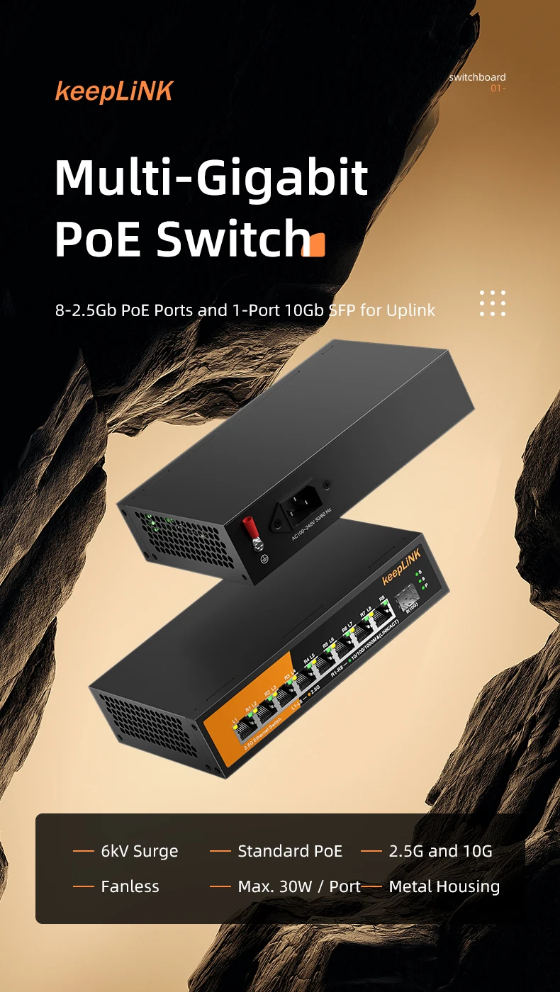 KeepLiNK-conmutador Ethernet multigigabit de 9 puertos, dispositivo con puertos PoE de 8-2,5 Gb y SFP de 1-10Gb para enlace ascendente, no gestionado, Plug and Play
