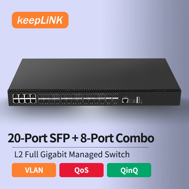Comprar KeepLink-conmutador gestionado L2, conmutador con 20 puertos Gigabit SFP, Combo de 8 puertos Gigabit
