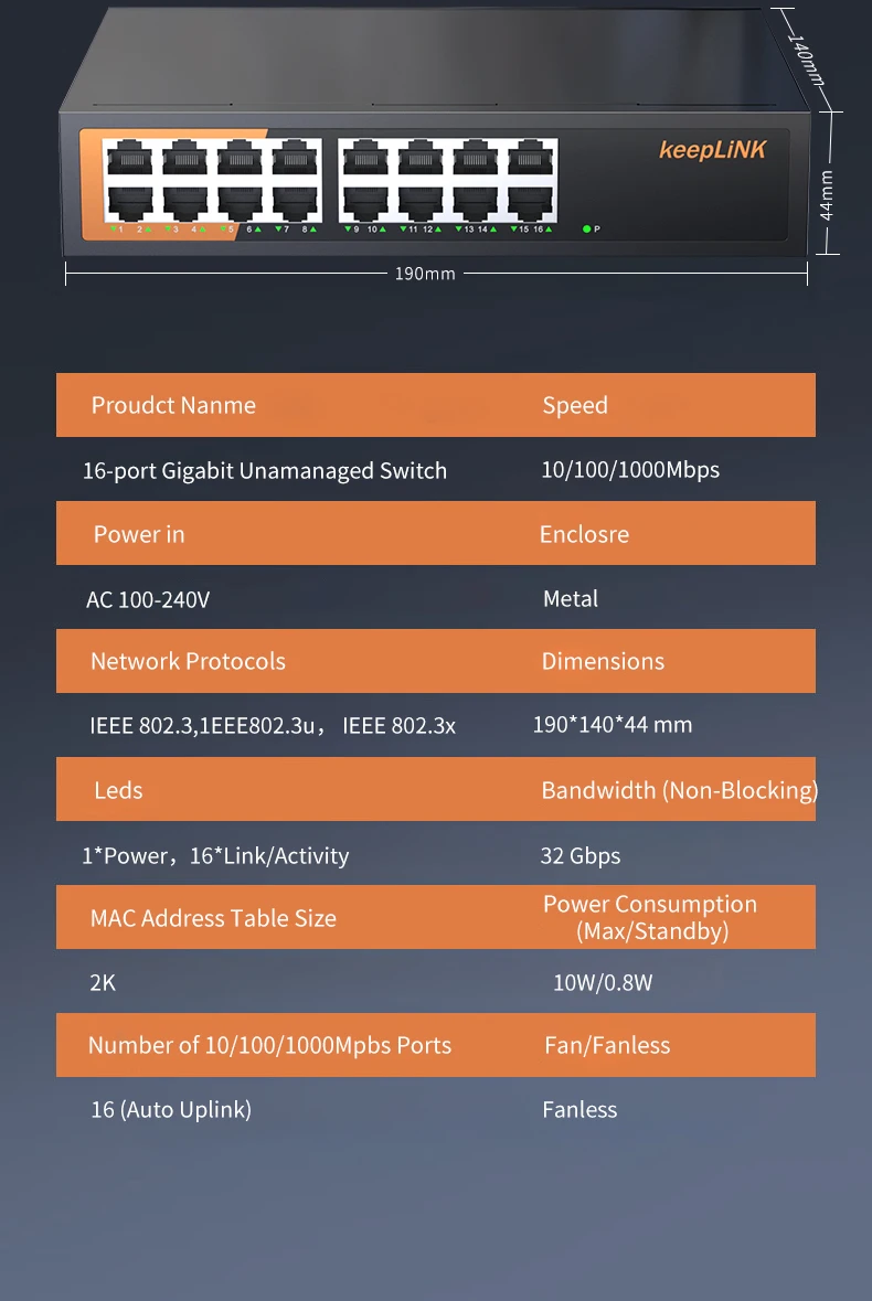 Comprar KeepLink-conmutador Gigabit Ethernet de 16 puertos