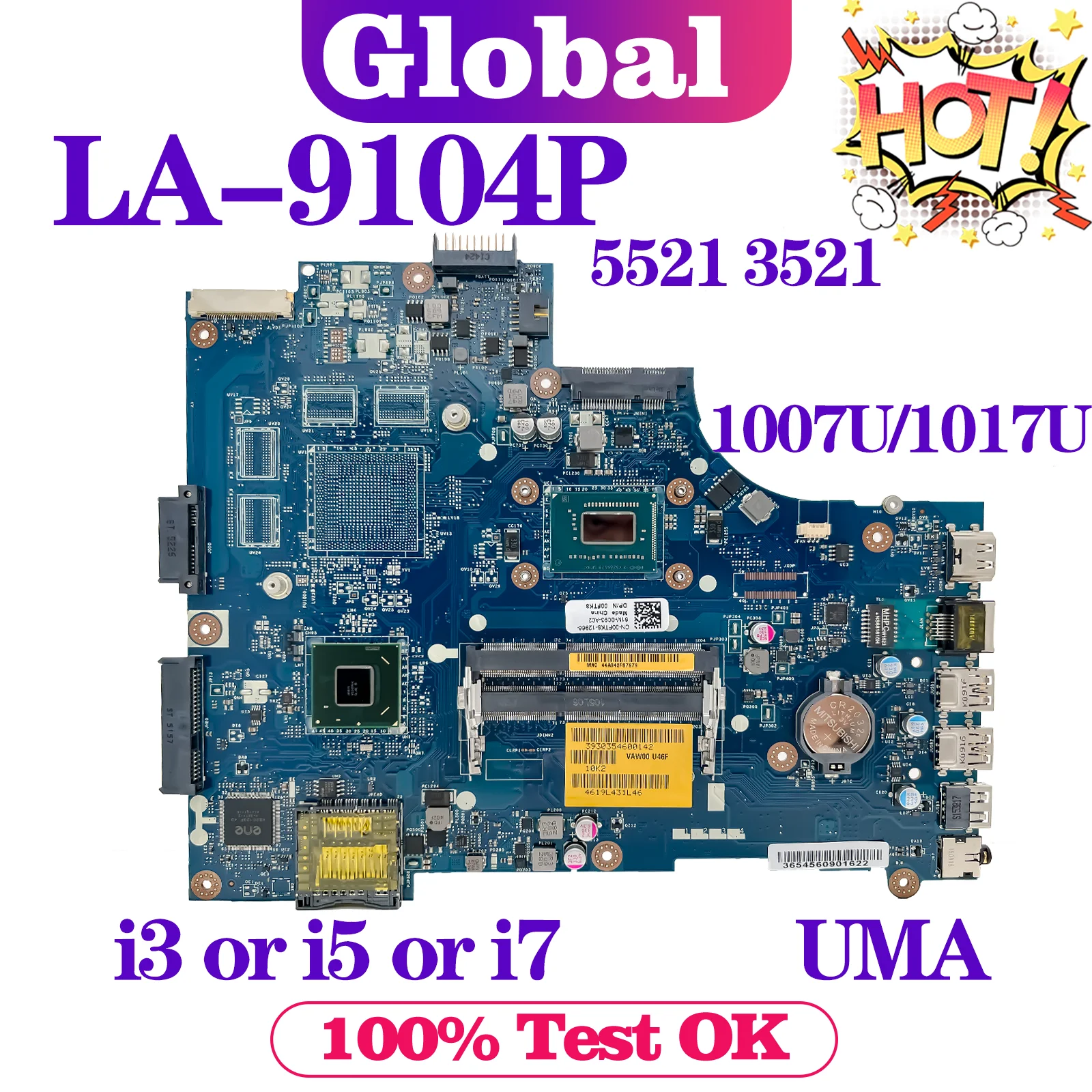 Comprar KEFU-placa base de LA-9104P para portátil, para Dell Inspiron 15, 3521, 5521, 1007U/1017U, i3, i5, i7, 3th Gen, UMA