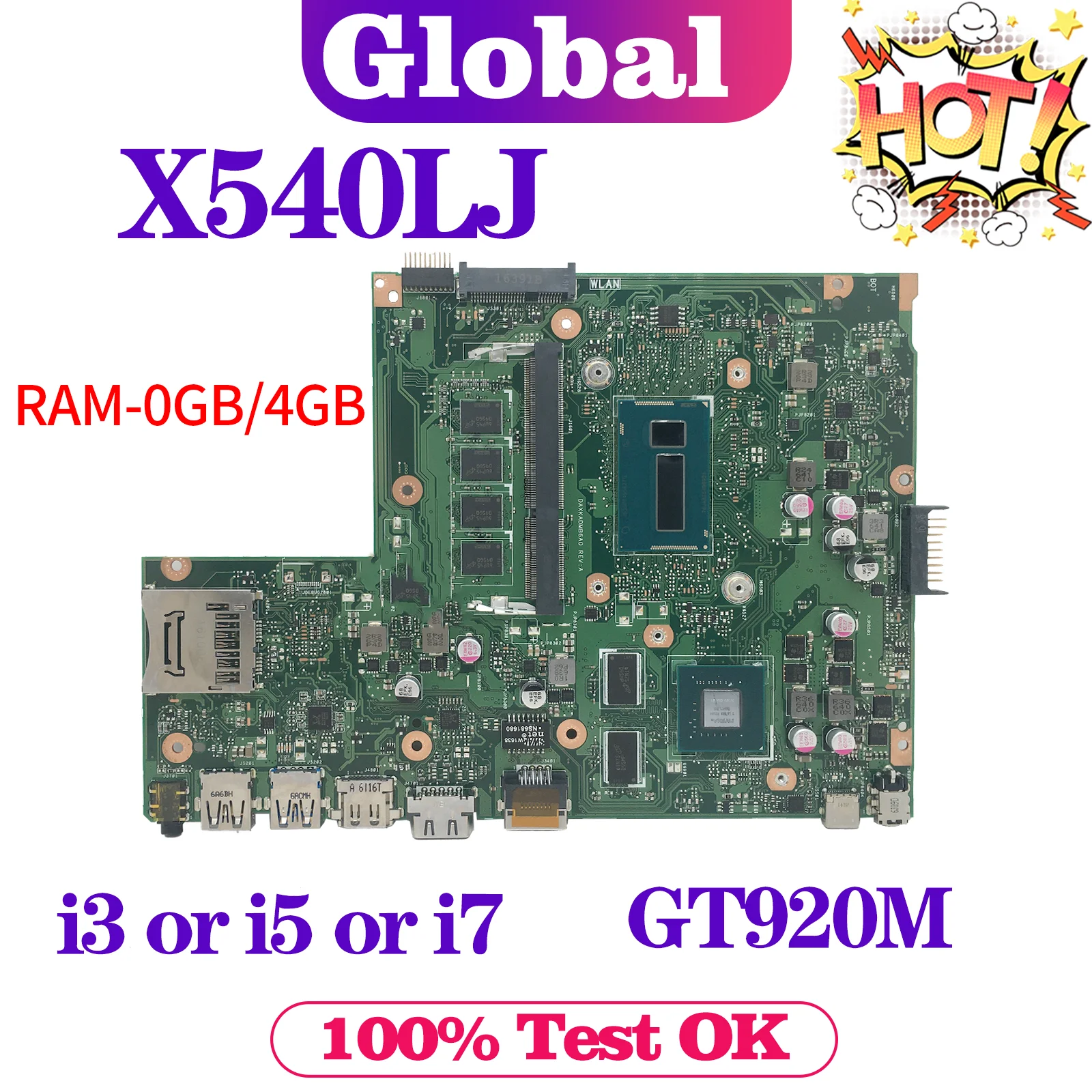 Comprar KEFU-placa base para portátil ASUS VivoBook, A540LJ, X540LJ, F540LJ, K540LJ, R540LJ, X540L, i3, i5, i7, CPU, RAM-0GB/4GB, GT920M