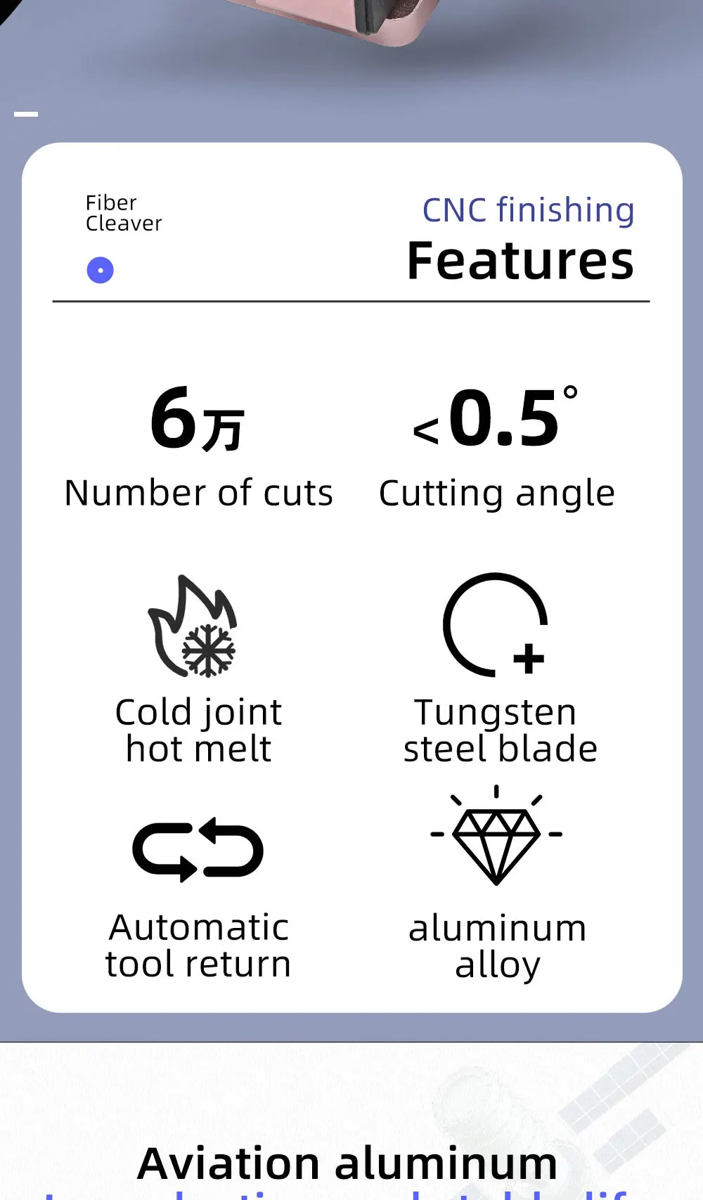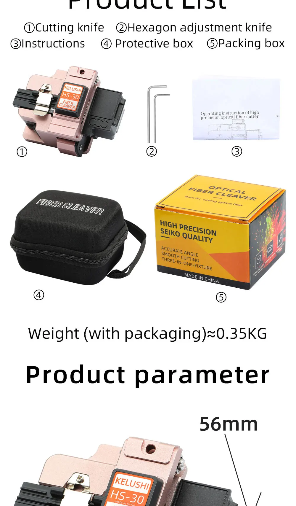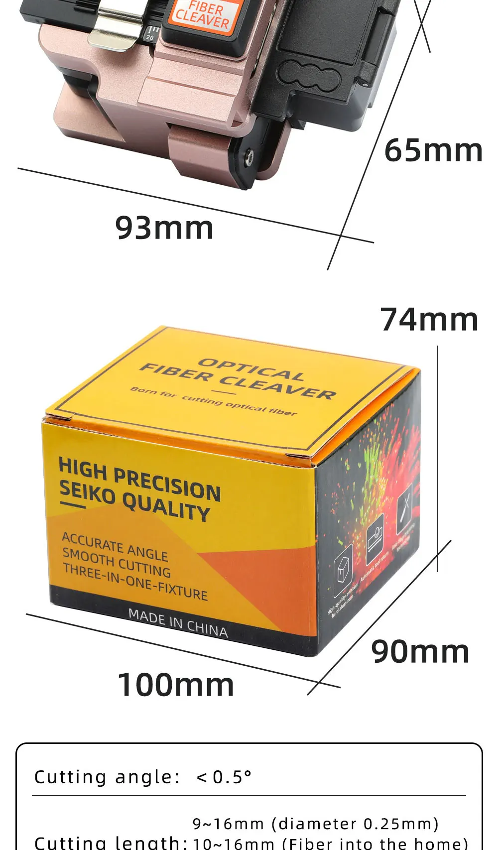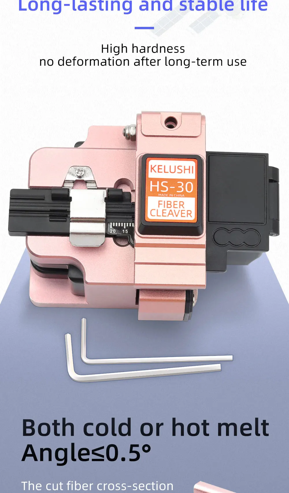 Cuchilla de fibra de alta precisión KELUSHIDescripción del producto:1. Puede cumplir con los cortadores multiusos de fibra termofusible.2. Productos con una superficie de cuchilla de alta resistencia de 24 puntos, mayor vida útil.3. Viene con accesorios triples que pueden ser línea de incisión, pigtails y fibra desnuda.4. Parte posterior automática de la cuchilla, diapositivas traseras automáticas de la cuchilla. Retorno manual de la cuchilla, corte más preciso5. Simplemente guarde la cubierta y empuje la cubierta de fibra para completar todo el trabajo de corte.Parámetro:Nombre del producto