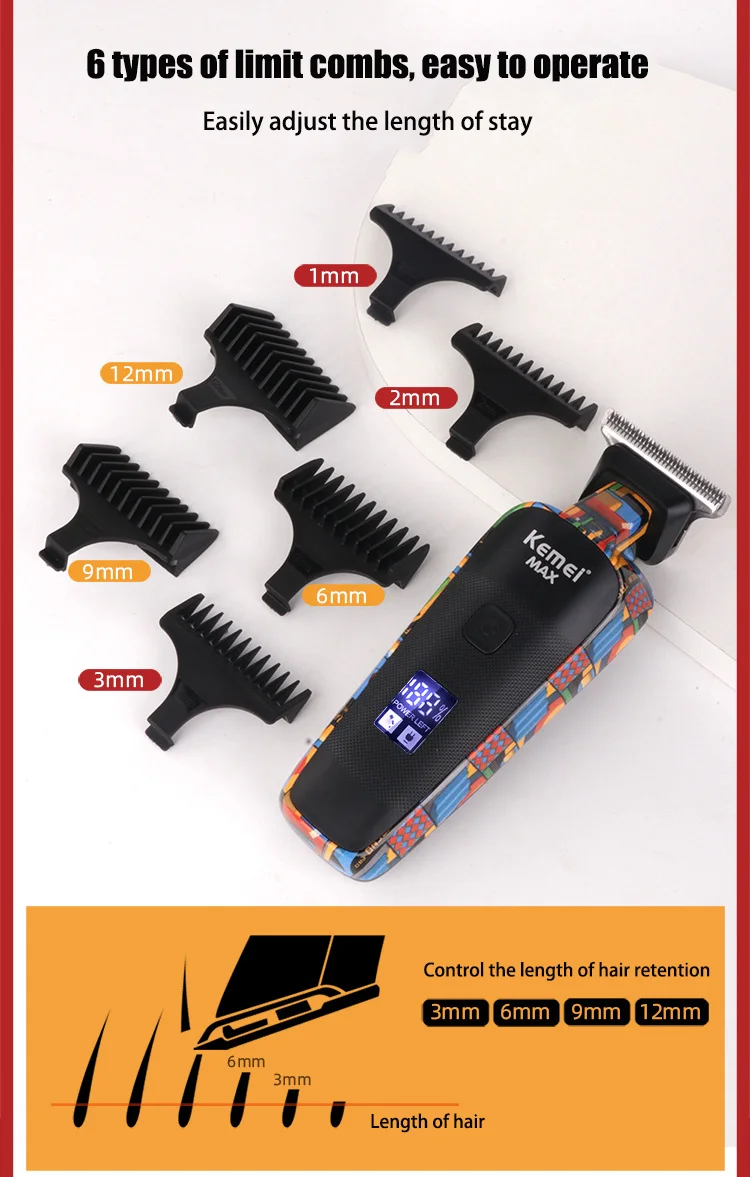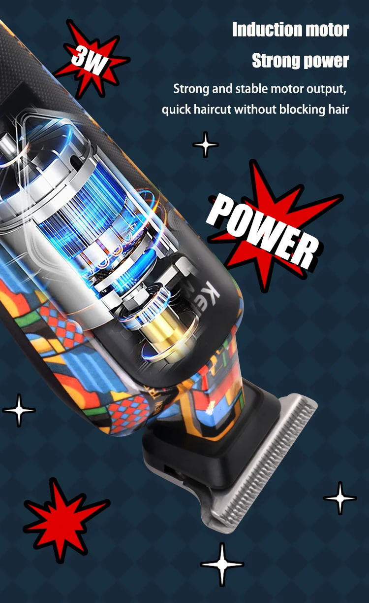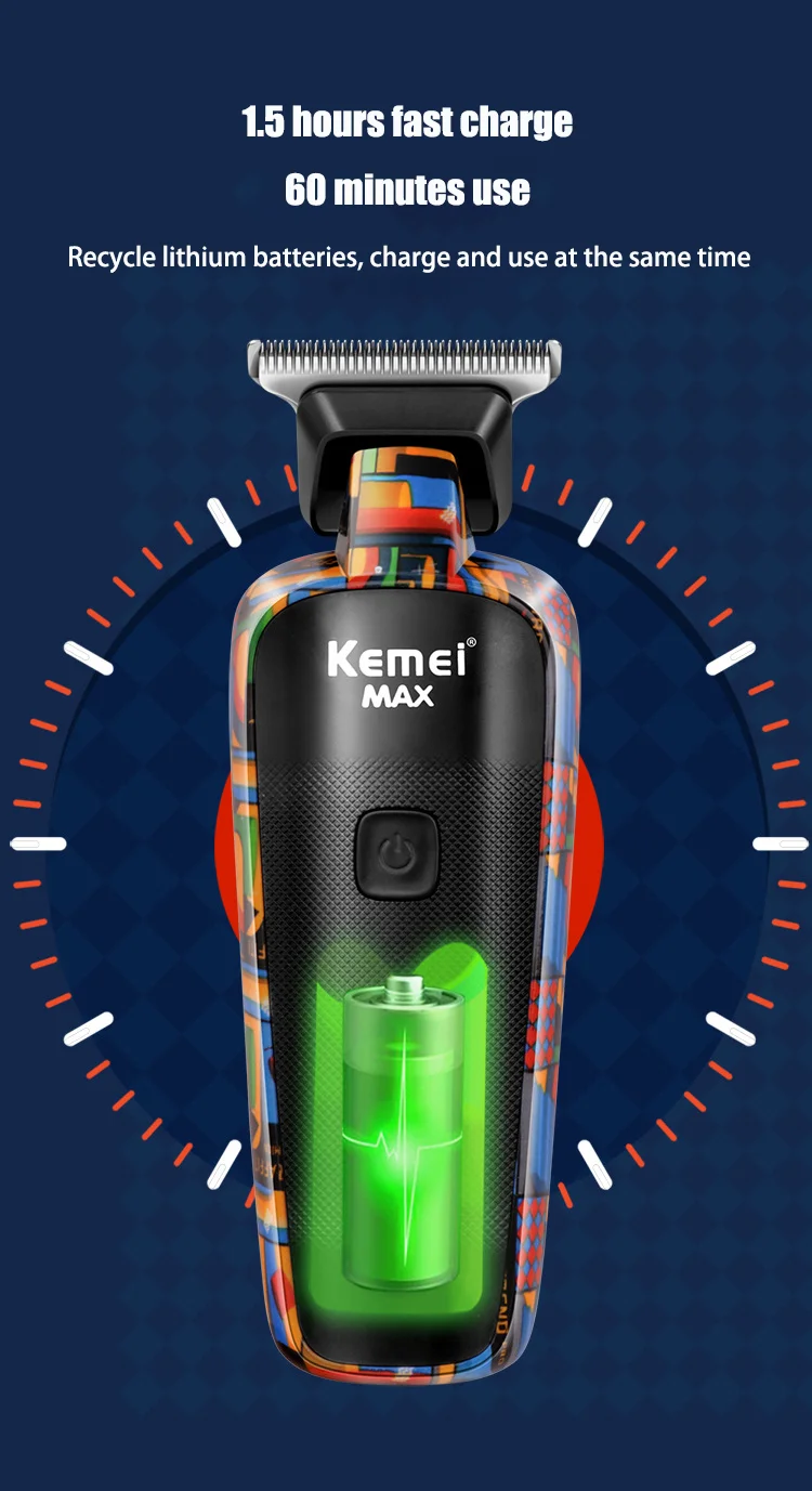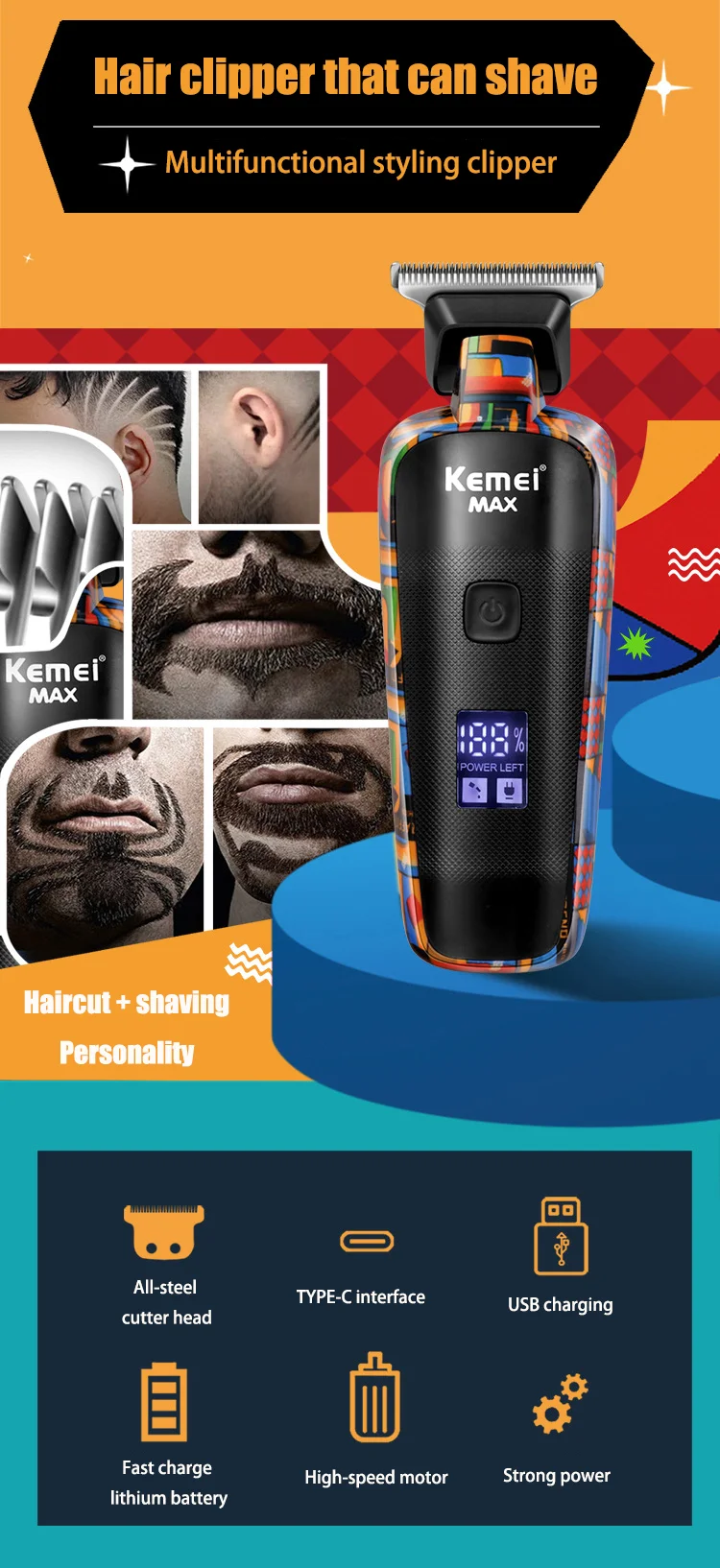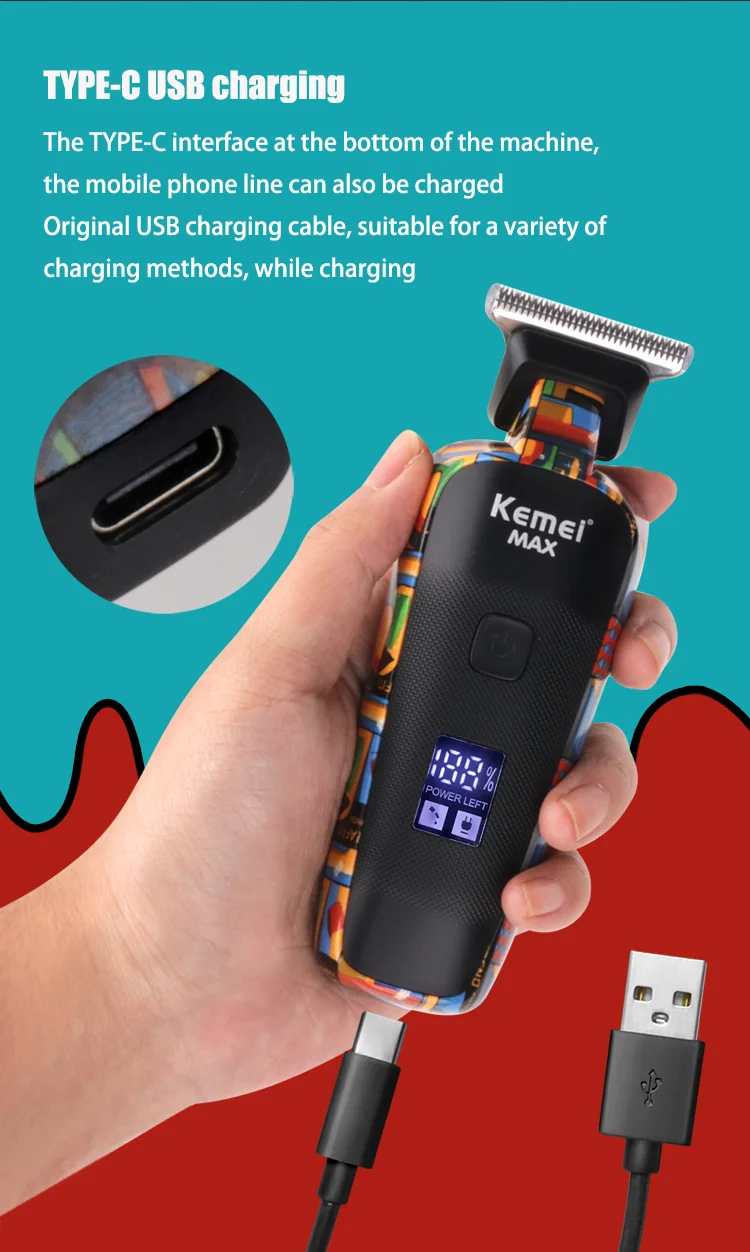 Comprar Kemei KM-cortadora de pelo eléctrica MAX5090 para el hogar, maquinilla de afeitar con estampado de grafiti, recargable por USB, tipo C, para barbería
