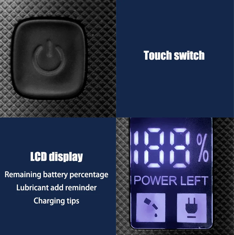 【Pantalla LCD y carga USB 】 mantenerse al tanto del Estado de Trabajo del host, la pantalla LCD puede mostrar la potencia restante, las indicaciones de carga, las indicaciones de aceleración, un nuevo actualizado El método de la carga por USB, que se puede cargar en zócalos, ordenadores, bancos del poder y otros lugares con los puertos de entrada del USB, realiza el sentido real de la carga y del uso en cualquier Tiempo