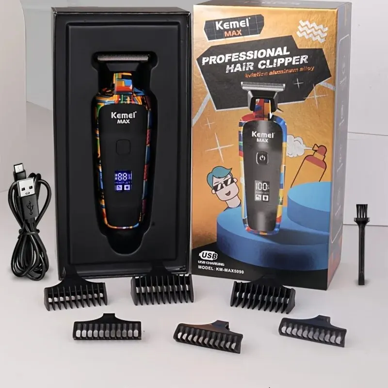 • USB recargable:Las cortadoras de pelo eléctricas Kemei km max5090 son recargables por USB, ofreciendo comodidad y flexibilidad en el manejo del cabello. ¡Solo Conéctate y vete!