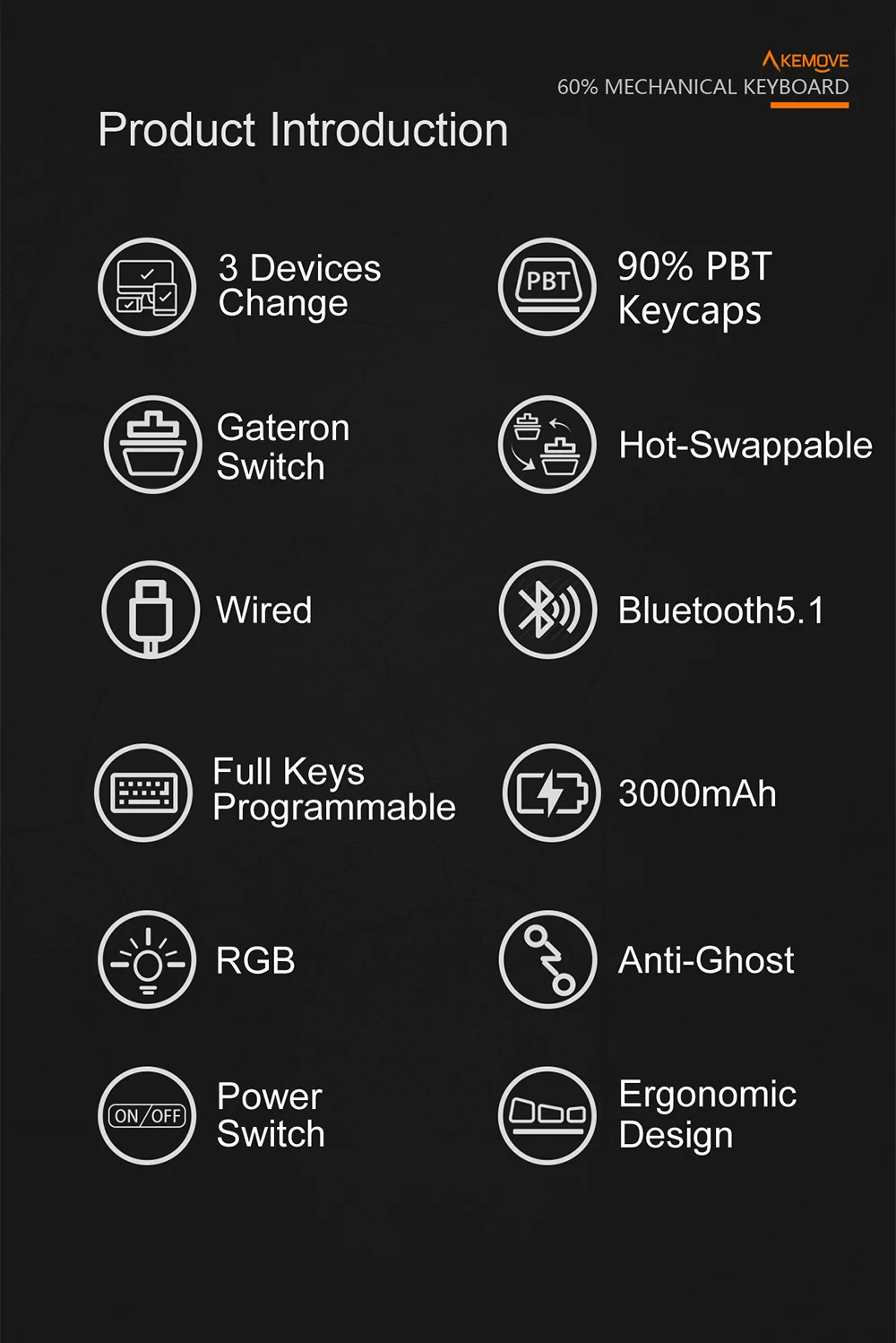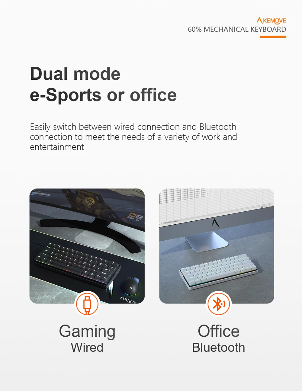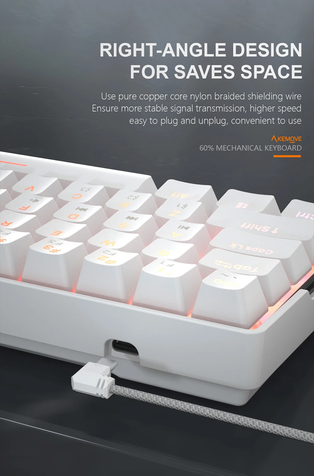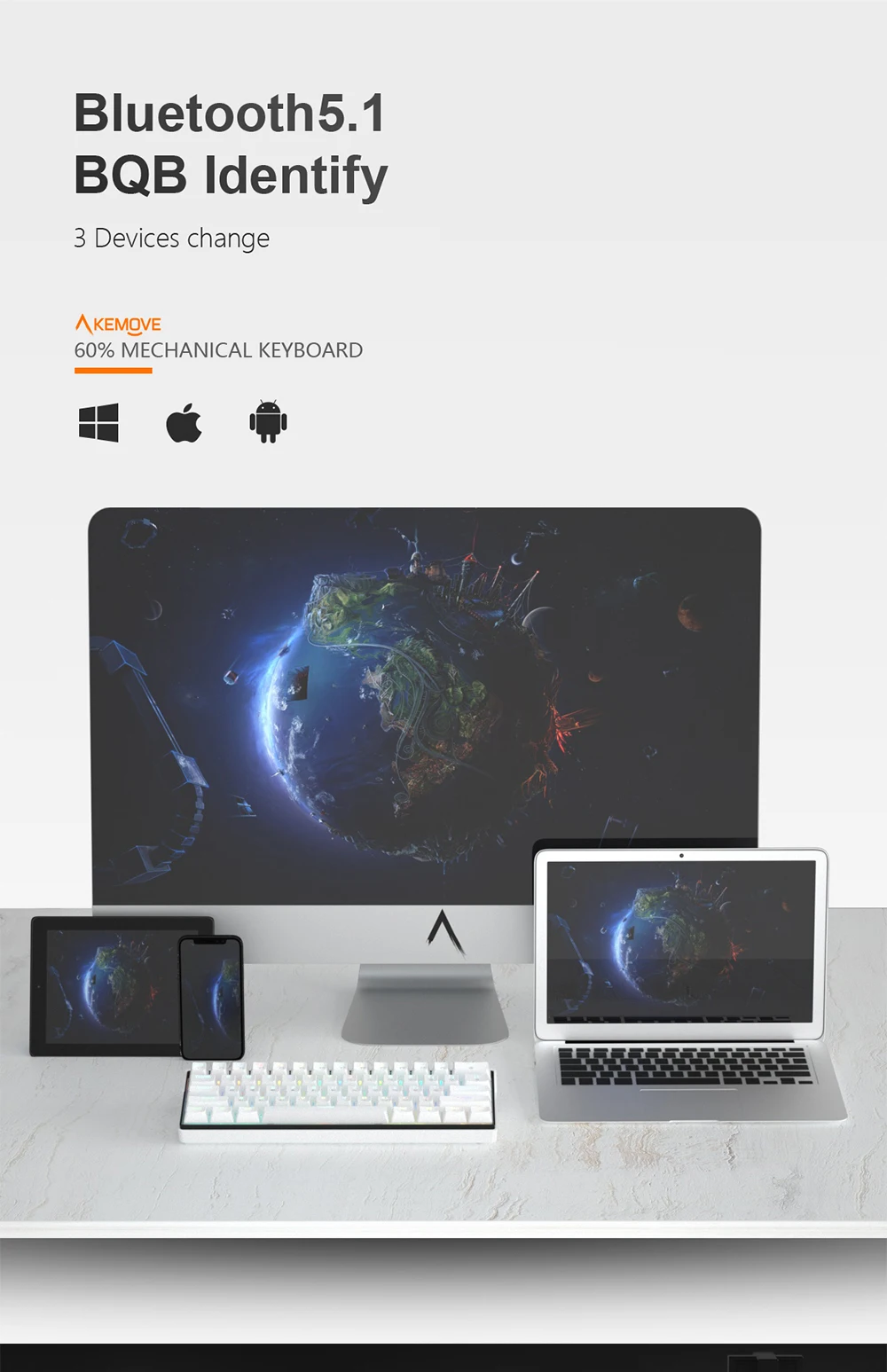 Comprar KEMOVE-Interruptor de Teclado mecánico de 61 teclas, 60% NKRO, Bluetooth, modo Dual, PBT, teclado inalámbrico con cable para juegos, PC, tableta, DK61