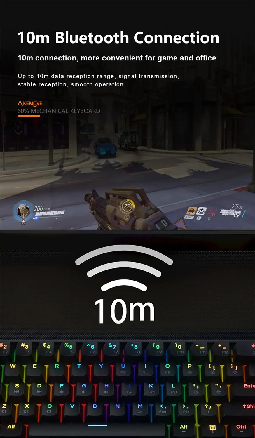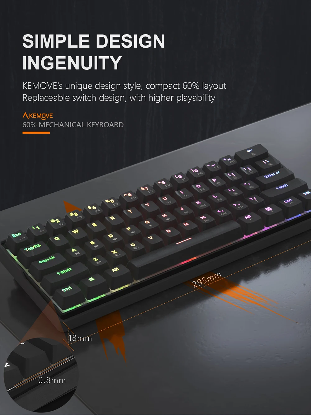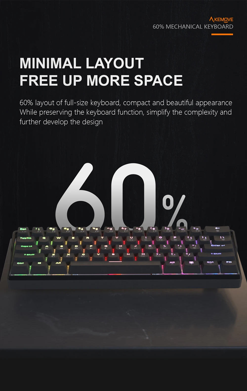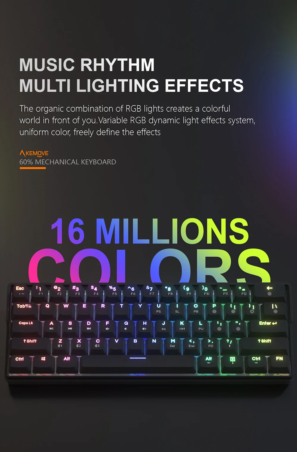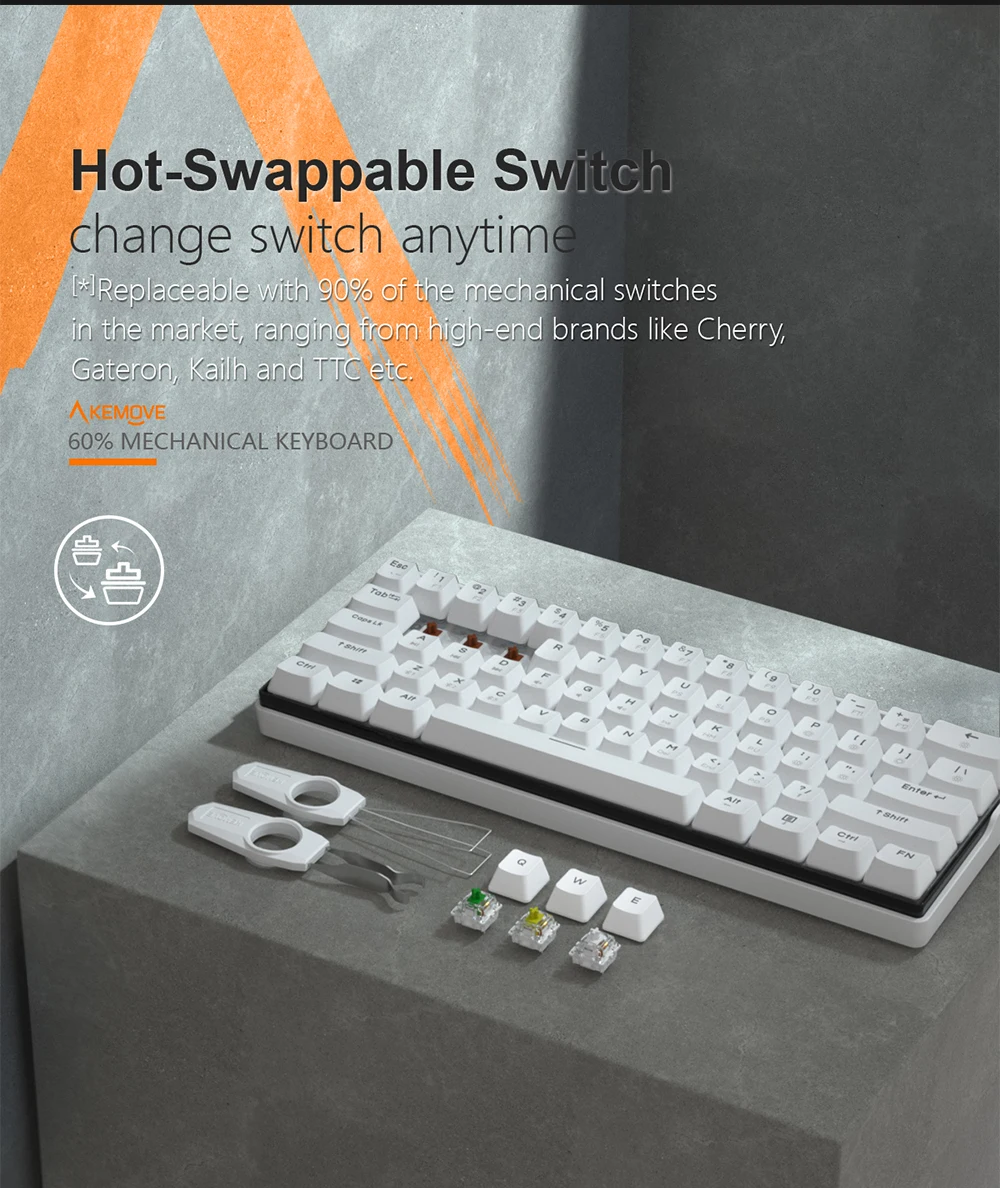 Comprar KEMOVE-Interruptor de Teclado mecánico de 61 teclas, 60% NKRO, Bluetooth, modo Dual, PBT, teclado inalámbrico con cable para juegos, PC, tableta, DK61