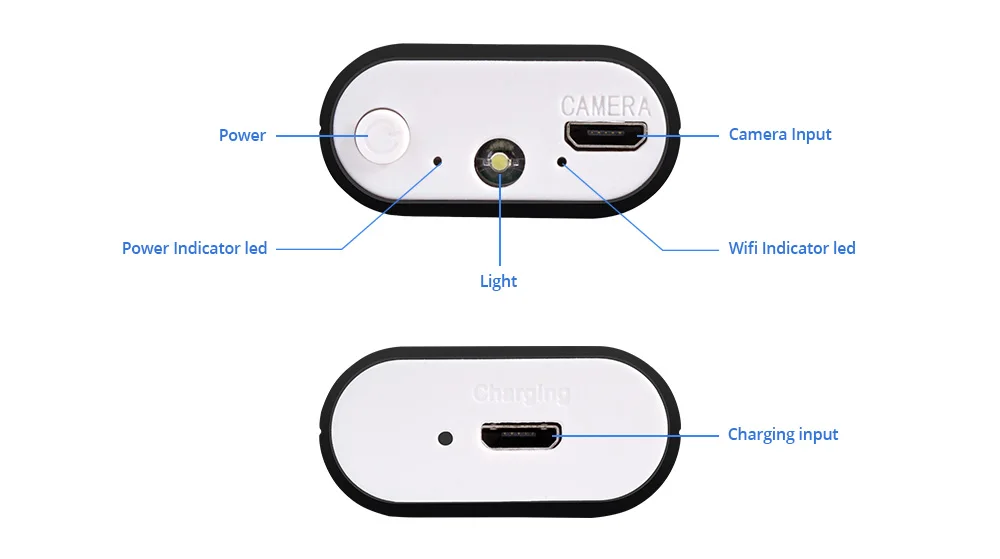 7. Dispositivo WiFi incorporado 500mAh batería puede ser de 45 minutos, a través de la fuente de alimentación de 5V para trabajar.