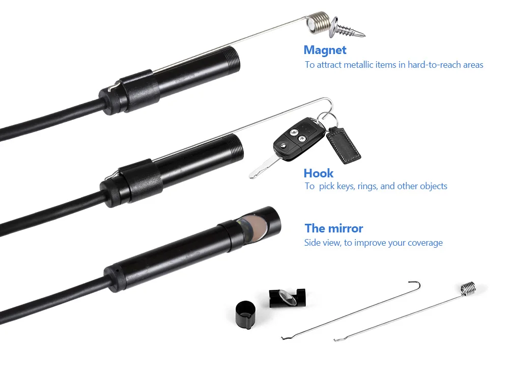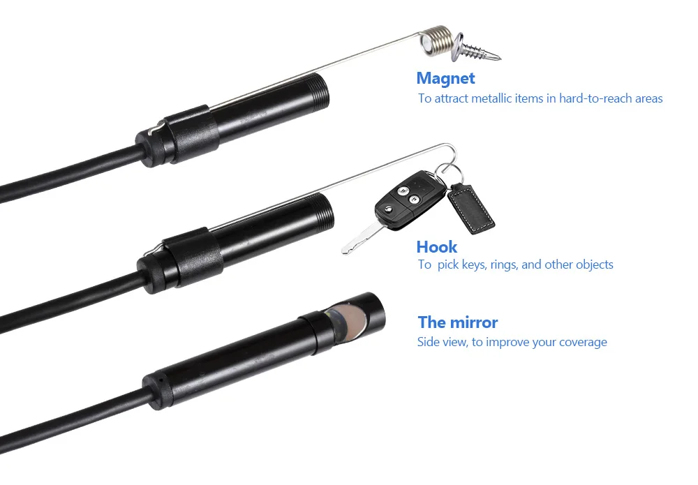 El Espejo, magnético y gancho, hecho de los materiales de primera calidad desde el mismo lugar que el endoscopio, será una herramienta útil y útil para disparar el problema que se detecta en el ambiente sombrío.