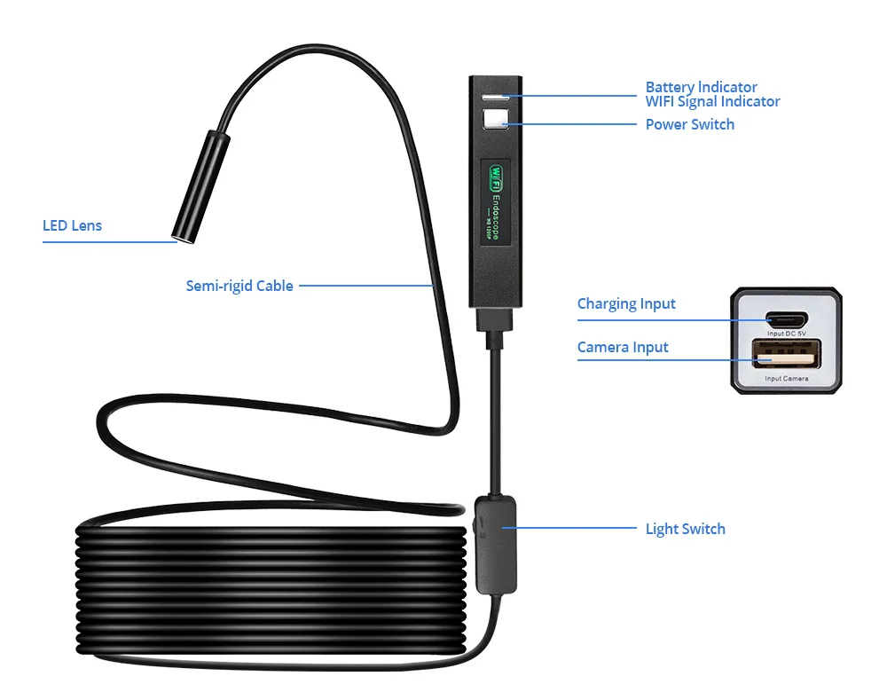 • Lente de 7mm:Con una lente de 7mm, esta cámara de endoscopio proporciona imágenes y videos de alta calidad de su inspección.