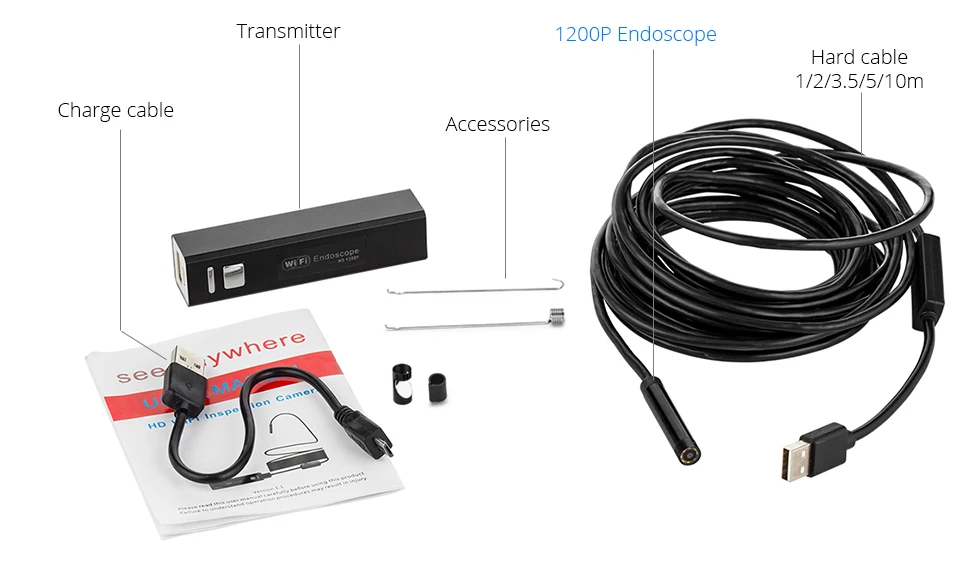 • Alambre duro:La CÁMARA DE endoscopio WiFi KERUI 1200P viene con un cable duro, lo que garantiza una conexión estable y confiable.
