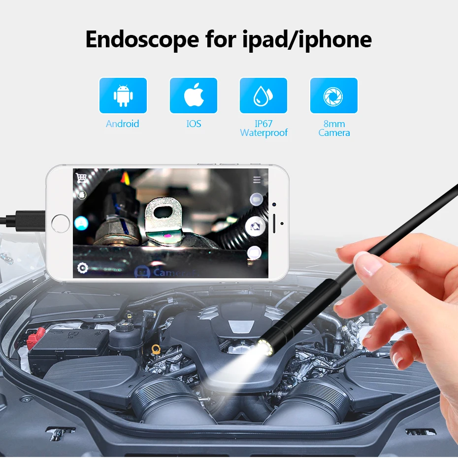 • Plug-and-Play:La Cámara endoscópica es fácil de usar y se puede conectar al teléfono iOS directamente sin ningún proceso de configuración complicado.
