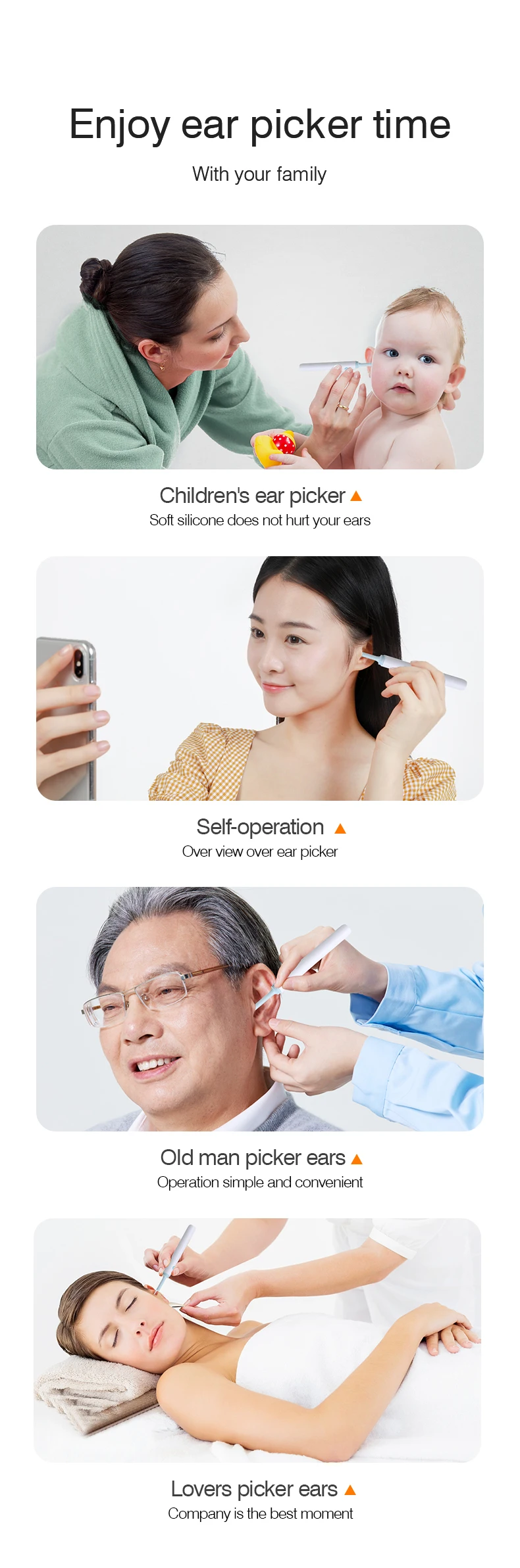 2.El giroscopio direccional de tres ejes puede lograr una recolección precisa de 360 ° sin ángulo muerto, lo cual es conveniente para su limpieza y cuidado diario del oído.