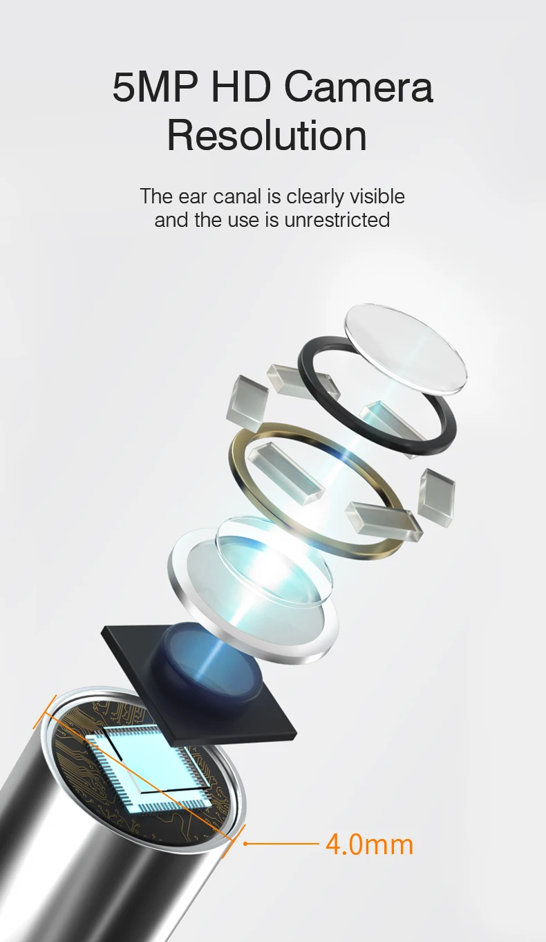 4.Un endoscopio de alta definición de 5 megapíxeles que proporciona imágenes claras en cualquier situación para ayudarlo a limpiar sus oídos de manera más fácil y segura.