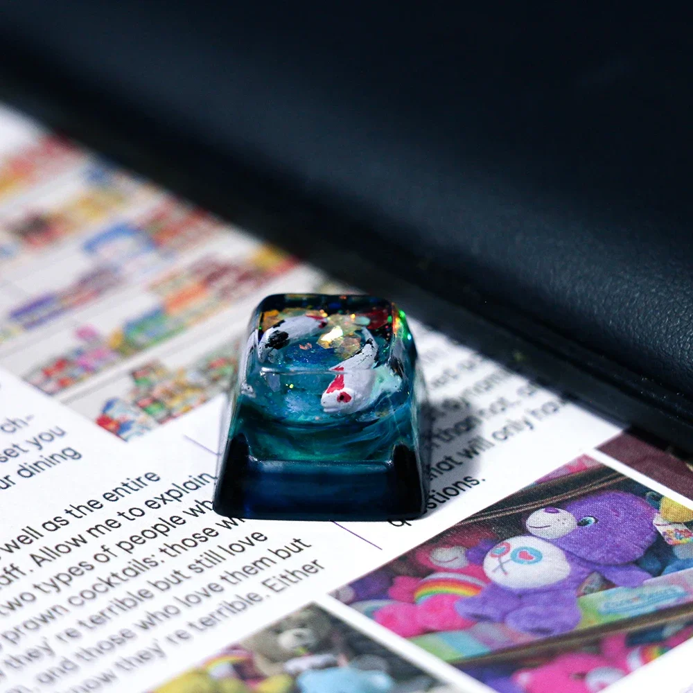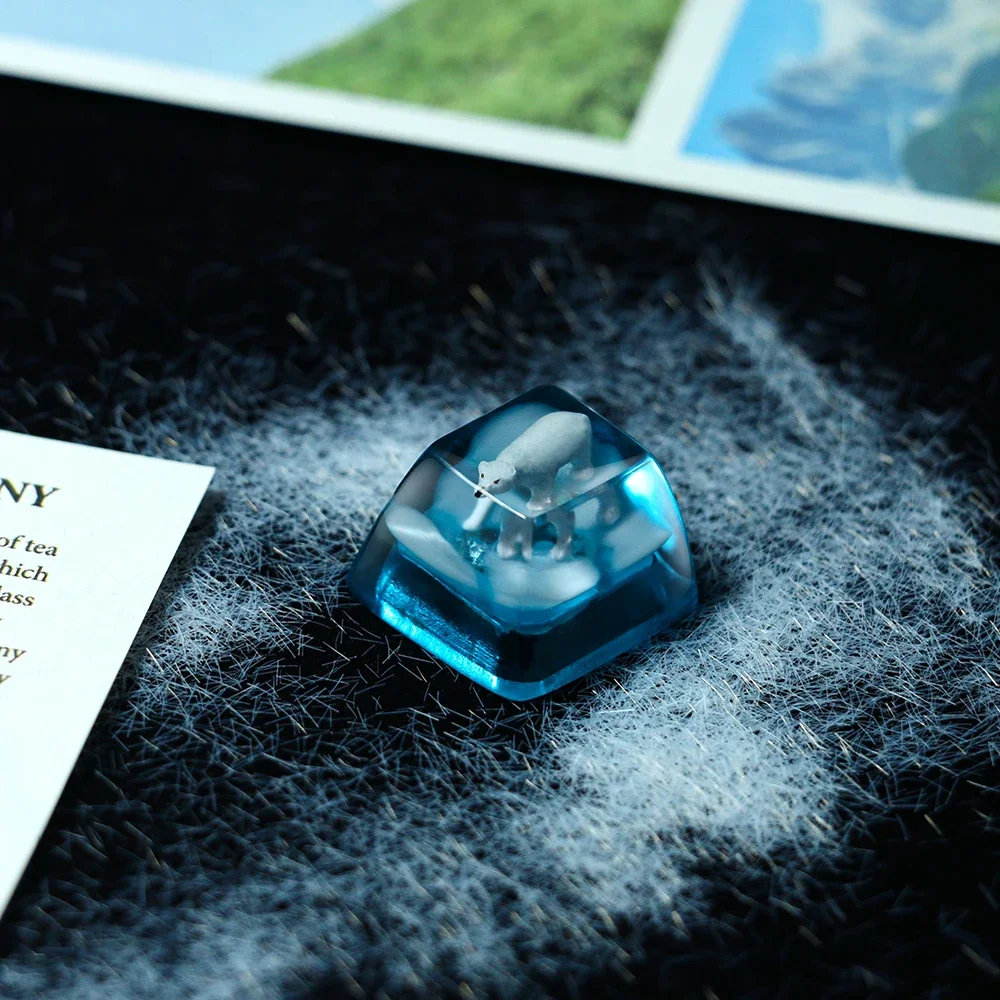 Resina Keycap Ice Rose/Oso Polar/Steampunk/estanque pez/koi/Estrella artesano Keycap Cross Axis OEM altura tapa de teclado mecánico