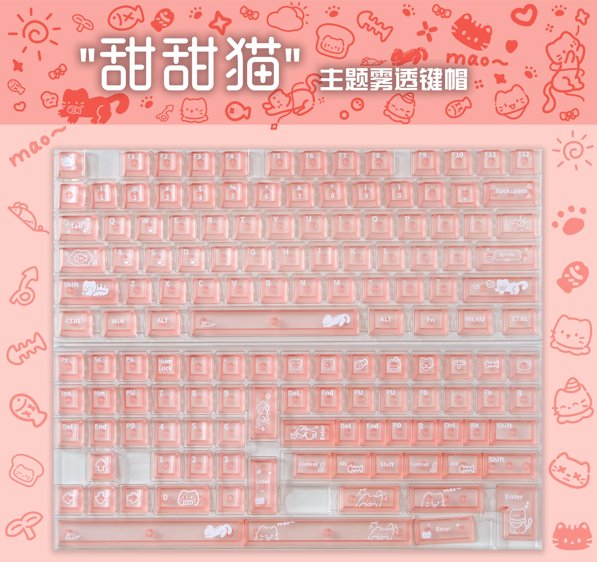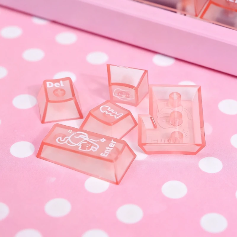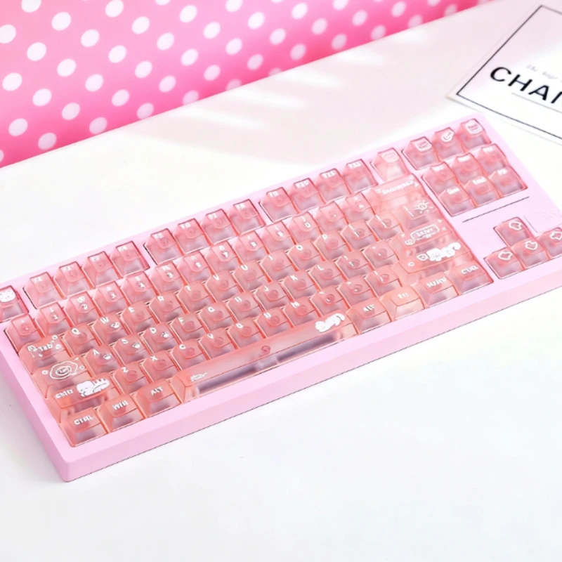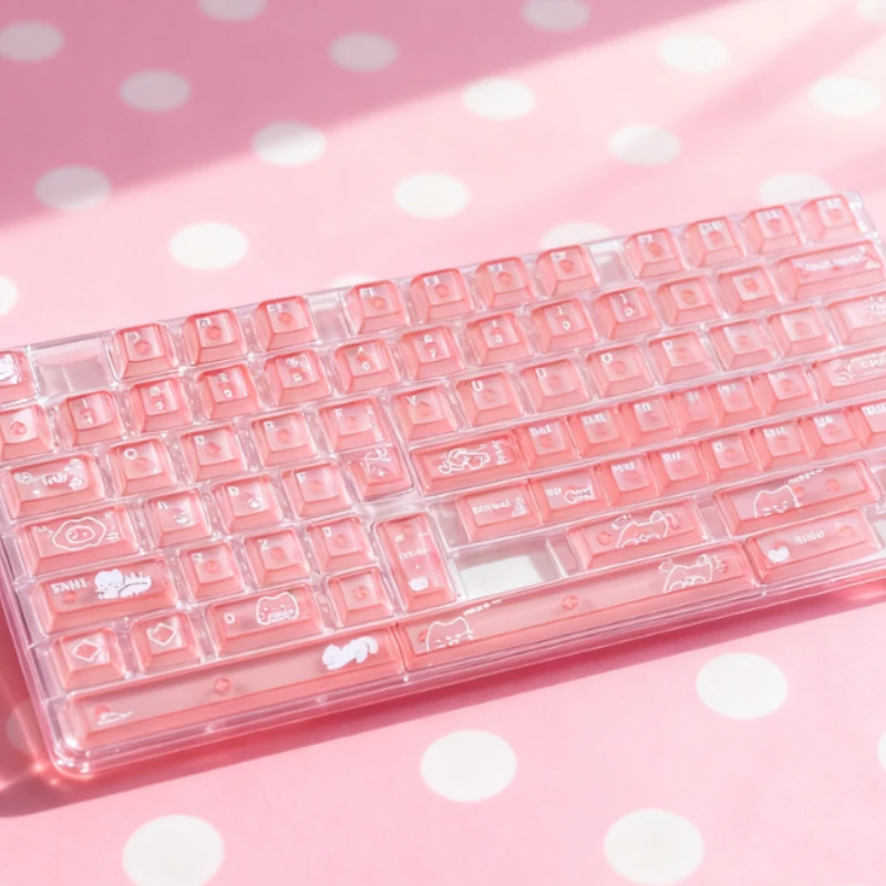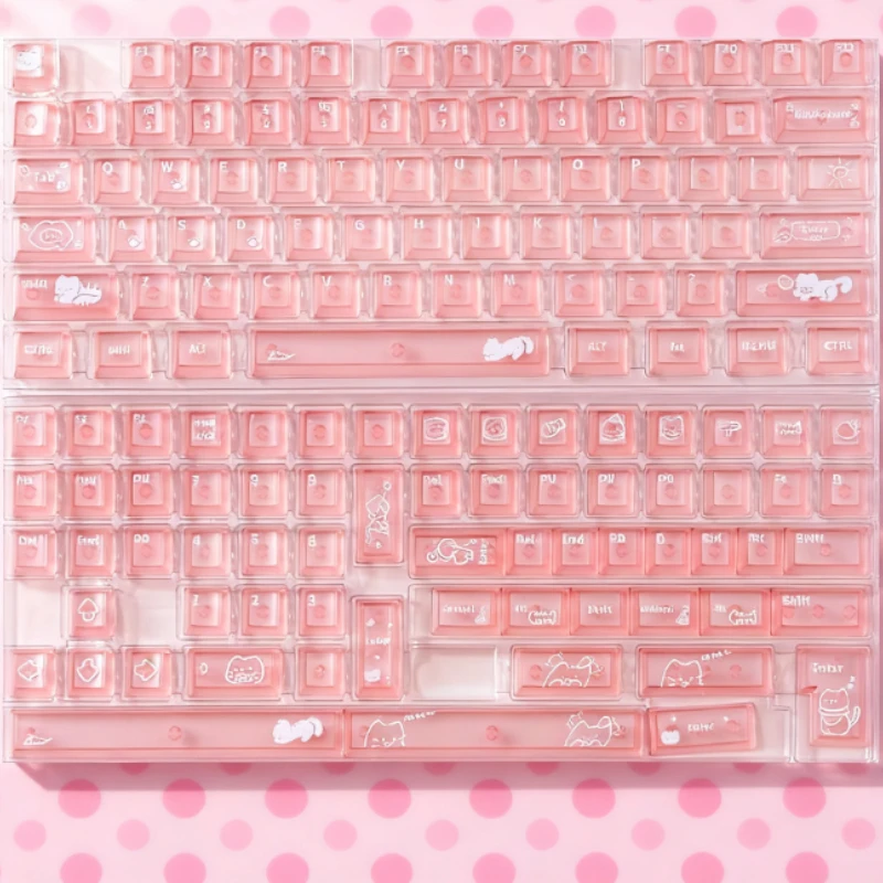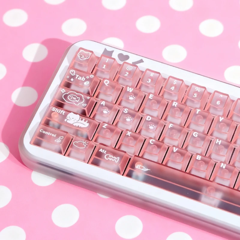 Comprar Keycat-teclas de teclado mecánico con temática de gato dulce, perfil de cereza, 140 Uds., rosa mate y transmisión de luz, bonito diseño personalizado