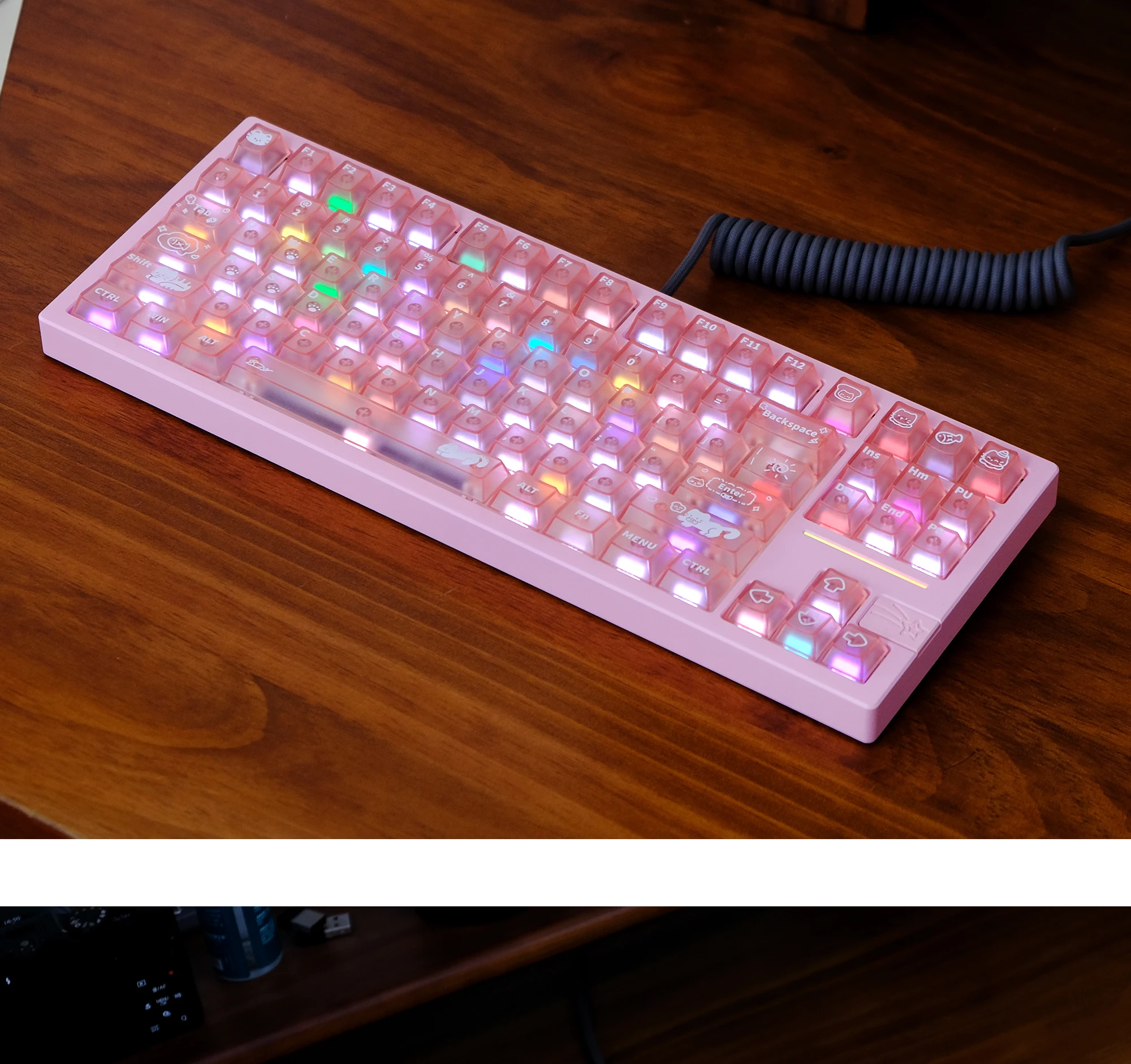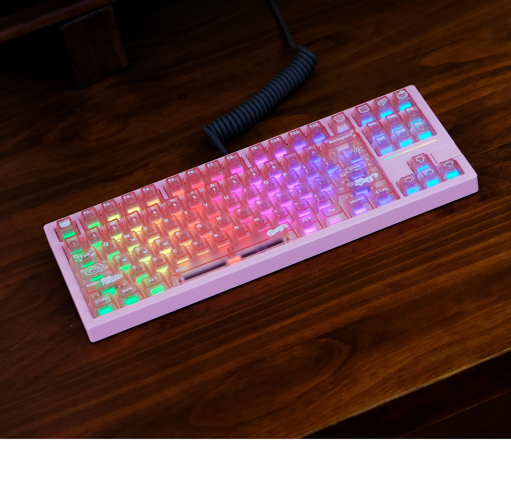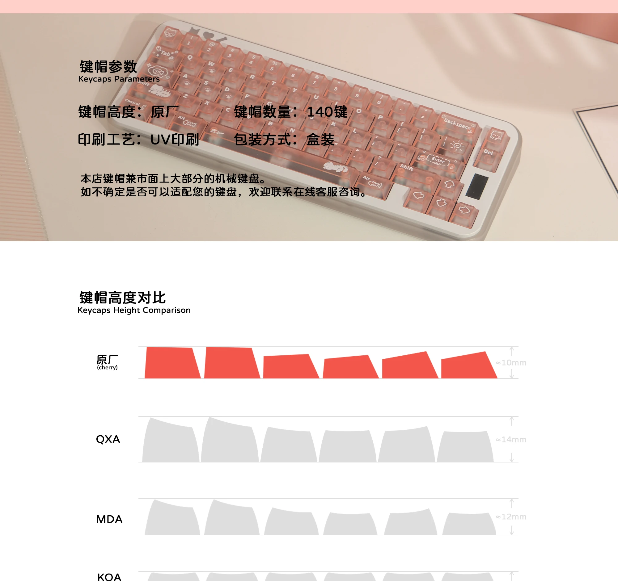 Comprar Keycat-teclas de teclado mecánico con temática de gato dulce, perfil de cereza, 140 Uds., rosa mate y transmisión de luz, bonito diseño personalizado