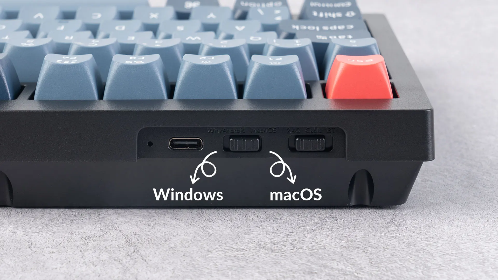 Construido pensando en la experiencia de los usuarios de Mac y al mismo tiempo conserva la compatibilidad con dispositivos Windows, el Keychron V1 Max viene con un interruptor de sistema y un conjunto adicional de teclas personalizadas para sistemas Windows y macOS.Ahora puedes guardar dos diseños diferentes en el teclado, uno para cada sistema.