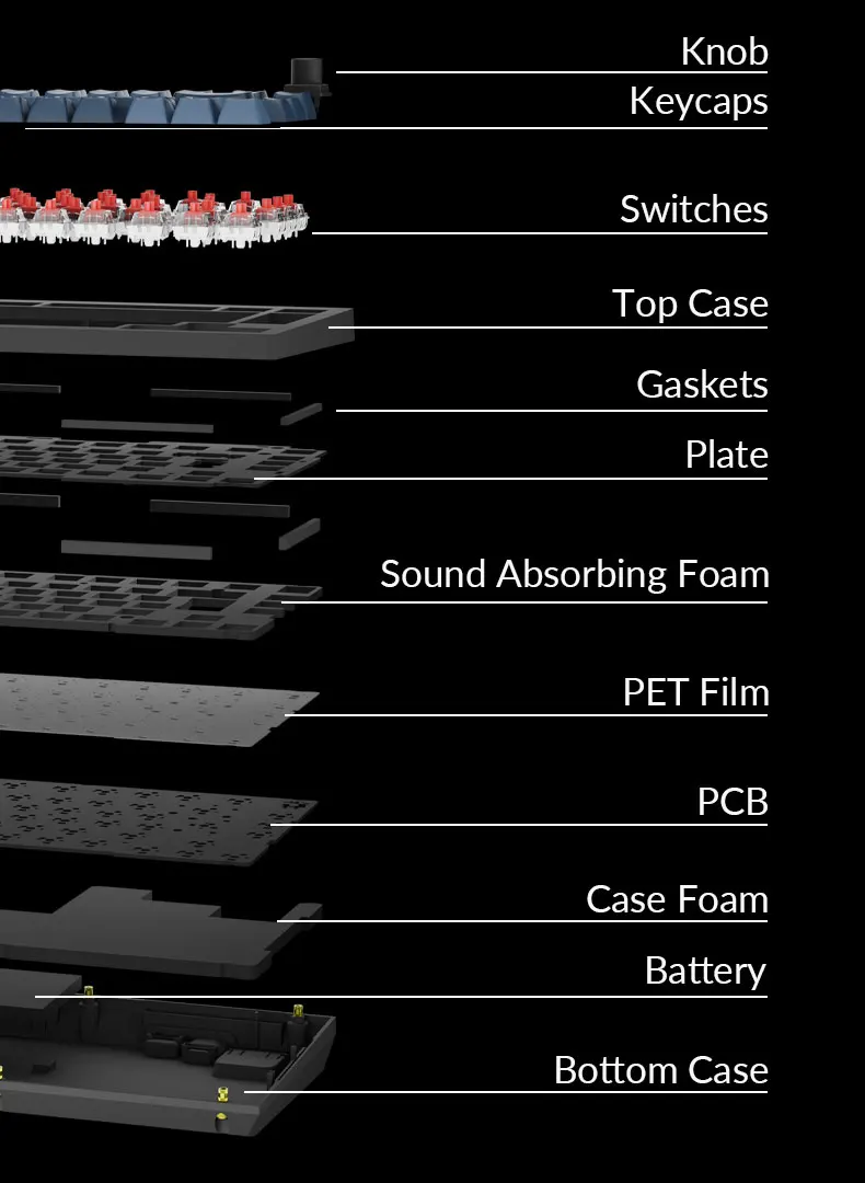 Para construir un teclado totalmente personalizable, diseñamos cada componente para que pueda ensamblarlo fácilmente para que pueda personalizar y ajustar cualquier pieza como desee.