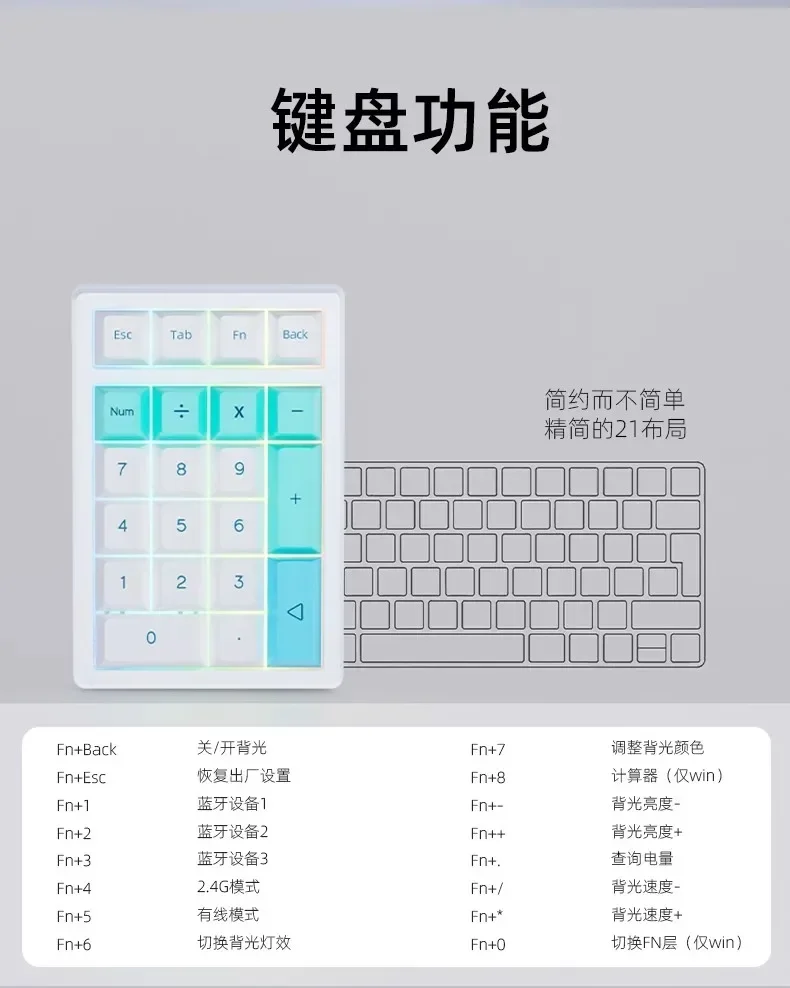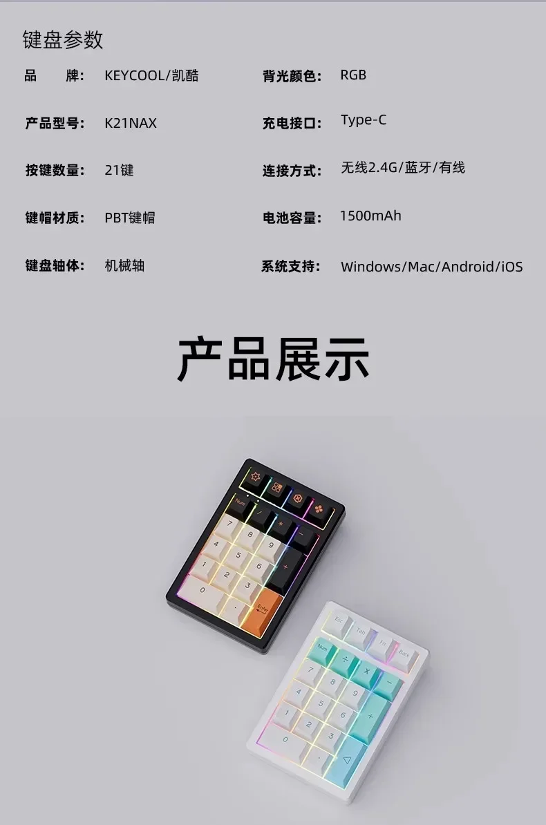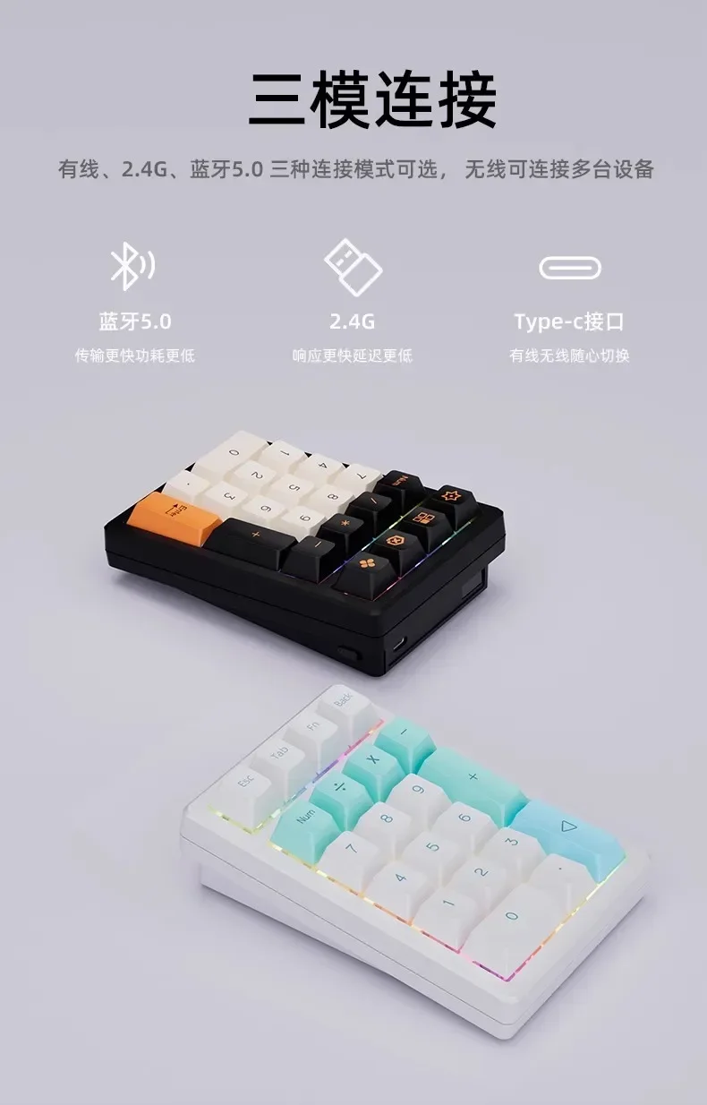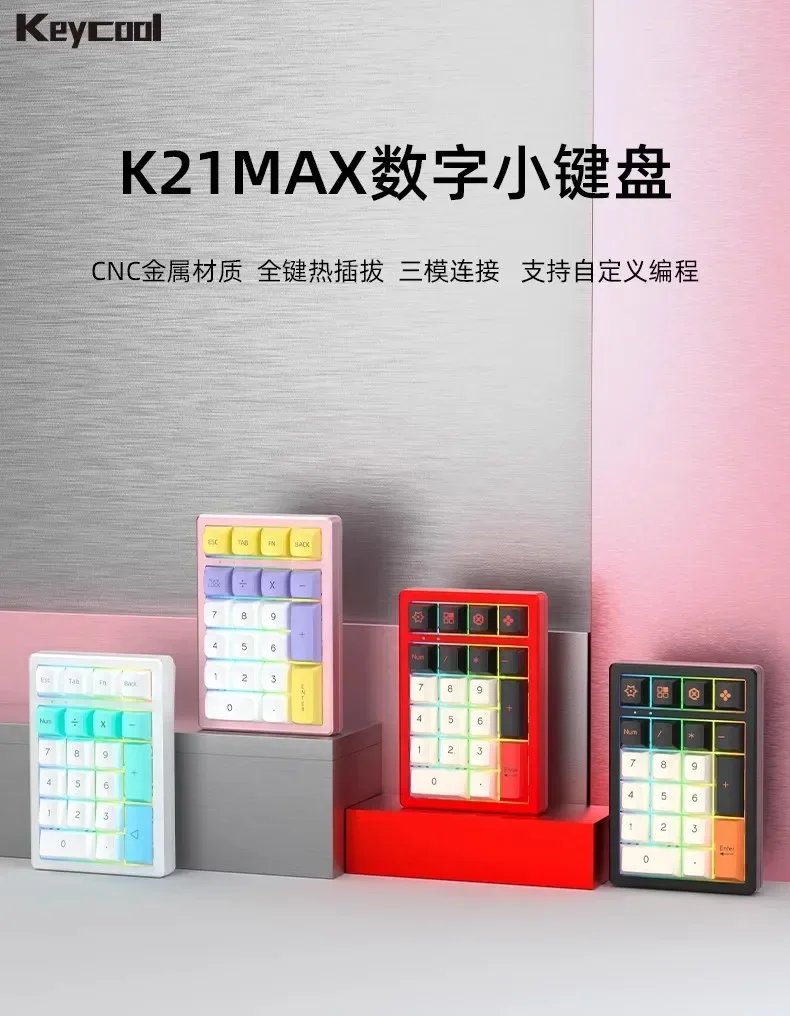 Keycool-Mini teclado mecánico K21MAX de aleación de aluminio, inalámbrico, tres modos, teclado numérico RGB, intercambio en caliente, PBT, regalos de oficina
