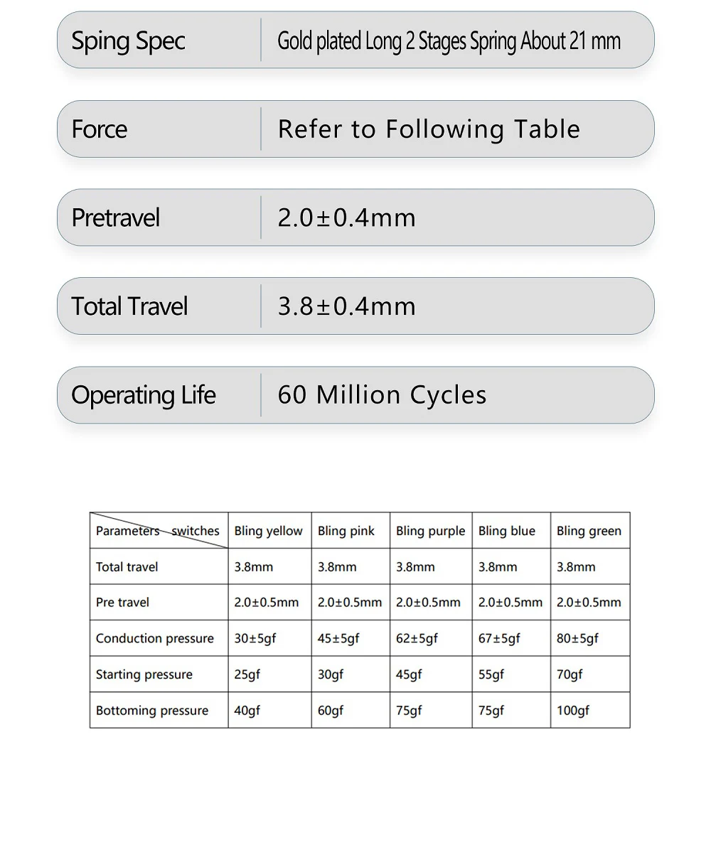 KeyFirst Bling Switch para teclado mecánico lineal 5 pines prelubricado RGB 30g 45g 62G 67g 80g Force 60m oro Sping amarillo púrpura