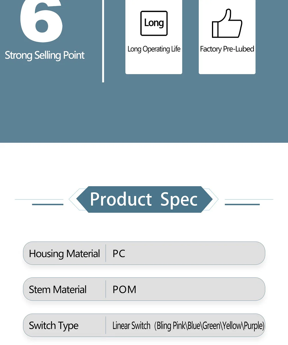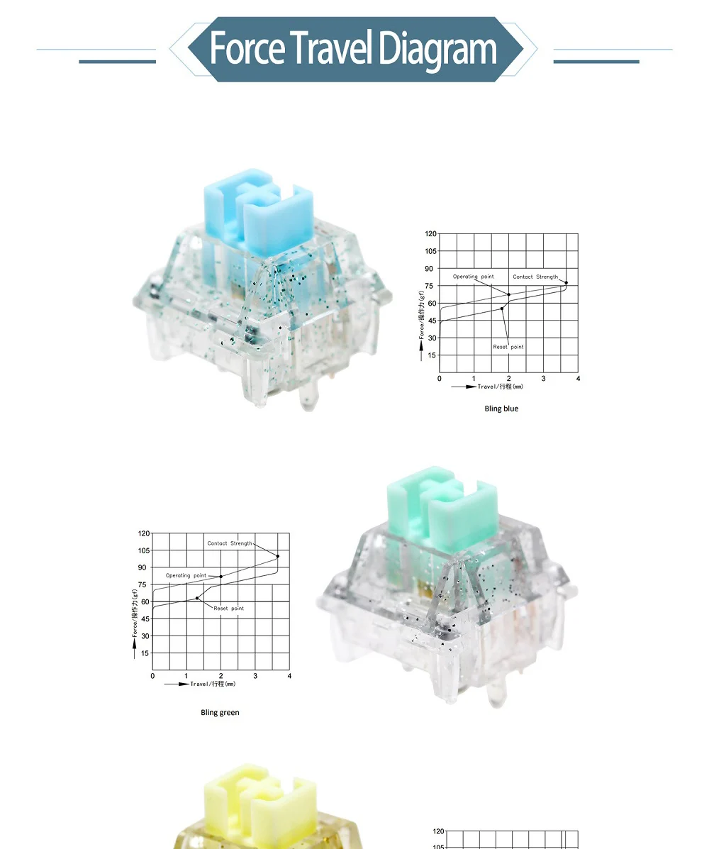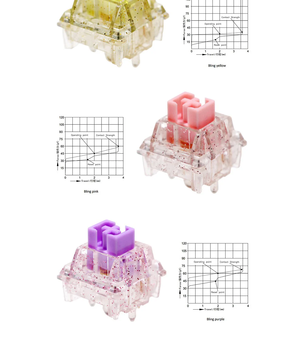Comprar KeyFirst interruptor lineal Bling, dispositivo de 5 pines, RGB, 30g, 45g, 62g, 67g, 80g, force mx, clon para teclado mecánico, 60m, Sping dorado