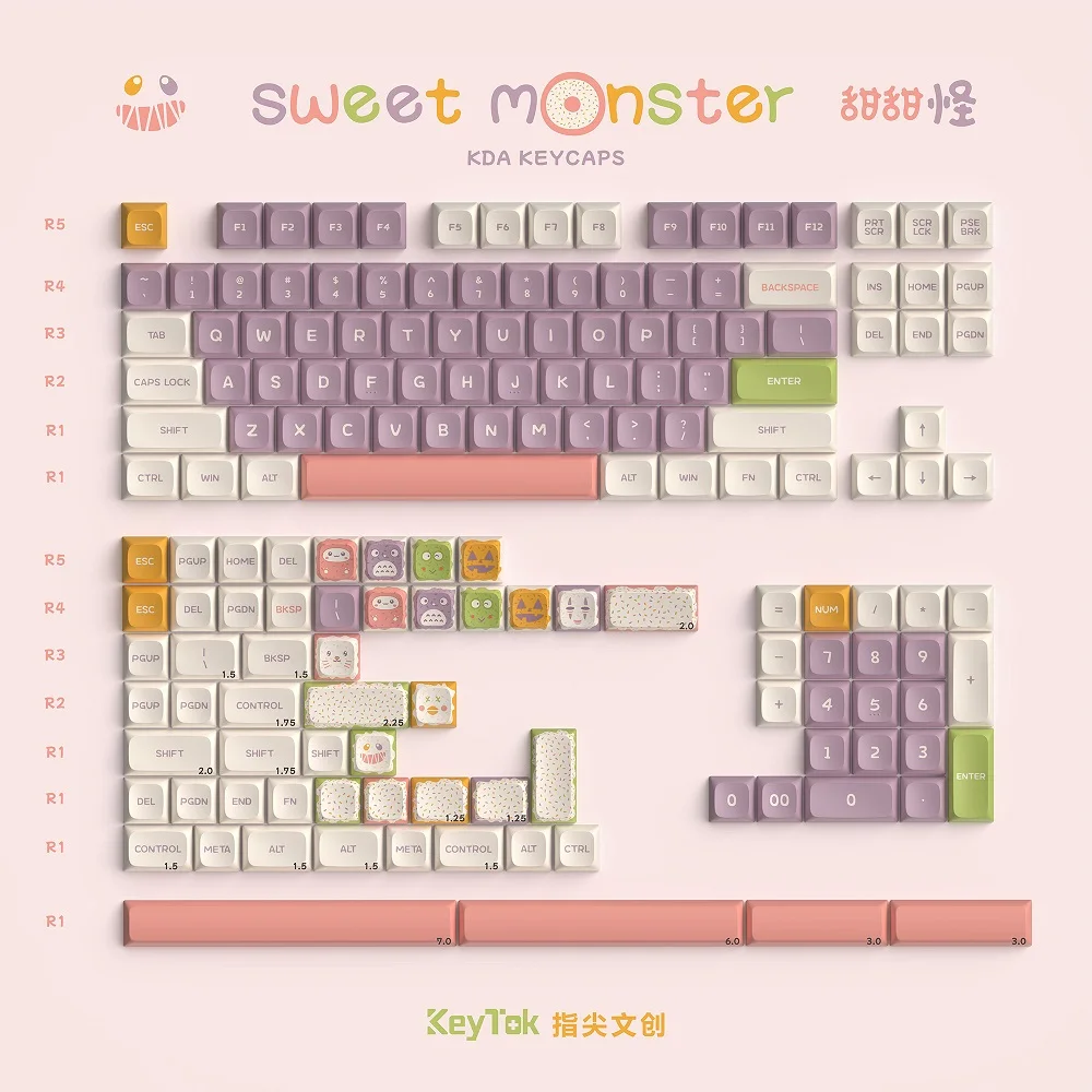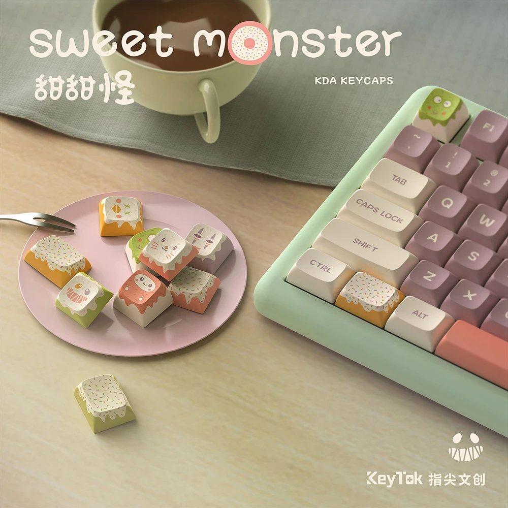 Comprar KeyTok KDA perfil Sweet Monster Dye Sub Keycap Set PBT grueso para teclado 87 tkl 104 ansi xd64 bm60 xd68 CSTC75 BM87 BM65