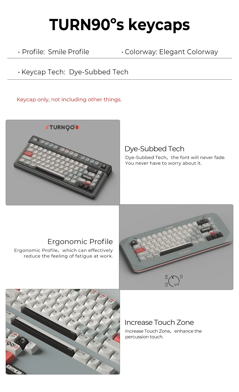 Comprar KeyTok Smile Profile Turn 90s Dye Subbed Keycap Set PBT para teclado 87 tkl 104 ansi xd64 bm60 xd68 CSTC75 BM87 BM65 gris