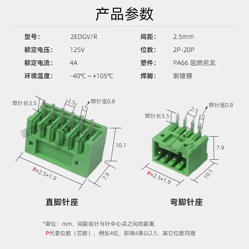 KF2EDGK KF2EDGR 2P 3P 4P 5P 6P 7P 8P 9P 10P 12P Conector enchufable Bloque de terminales Enchufe Pin en ángulo 125V 4A Paso de 2,54mm