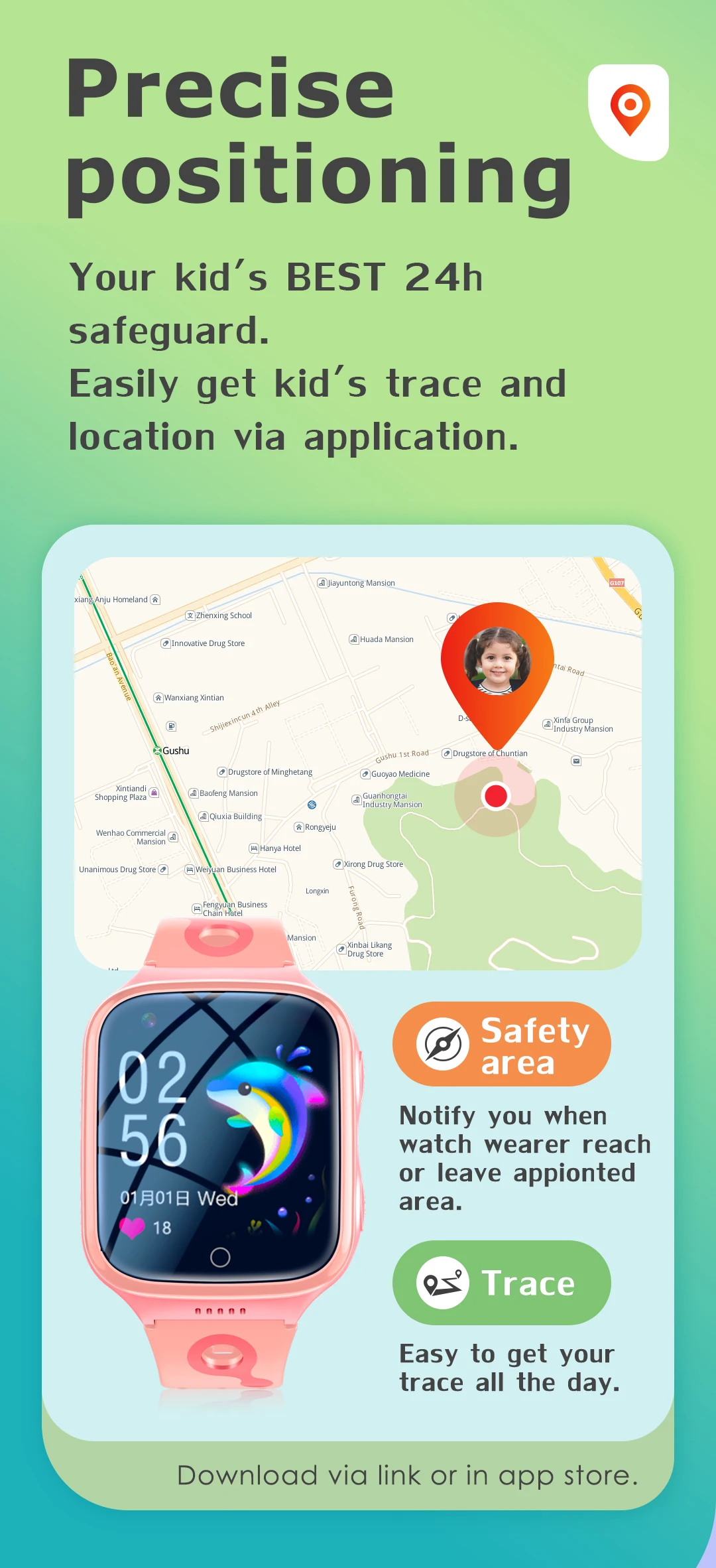6.El reloj admite monitor de salud como podómetro. Deje que los niños tengan una infancia segura y divertida.