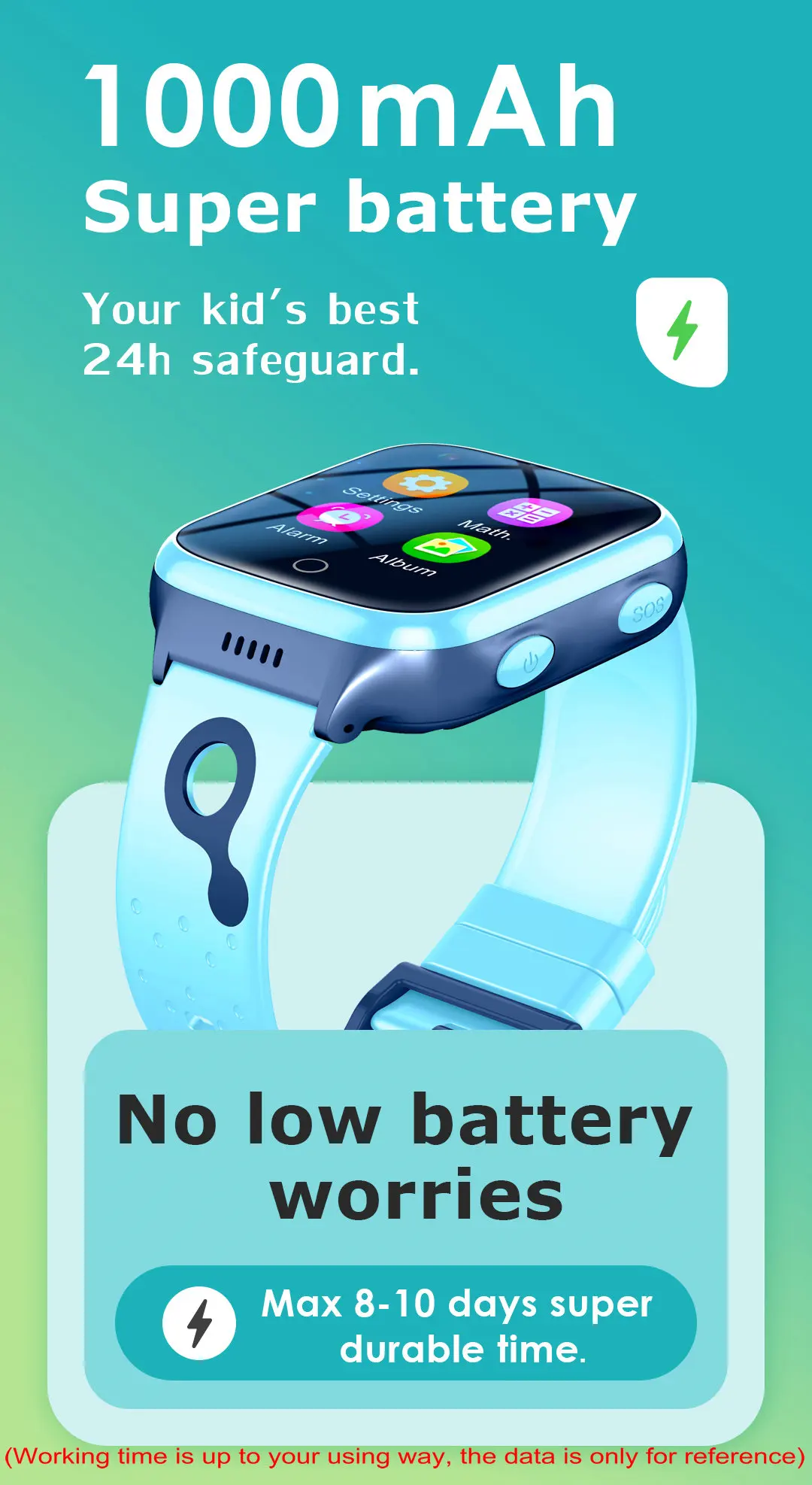 Reloj para niños KGG 4g:Es un reloj para niños de 4 g en el mercado con una batería más grande de 1000 mah, admite videollamadas HD, ubicación GPS precisa, llamada SOS, monitor de llamada, resistencia al agua IP67, llamada bidireccional, chat de voz, cercas electrónicas múltiples. Es una gran ayuda tanto para padres como para niños.