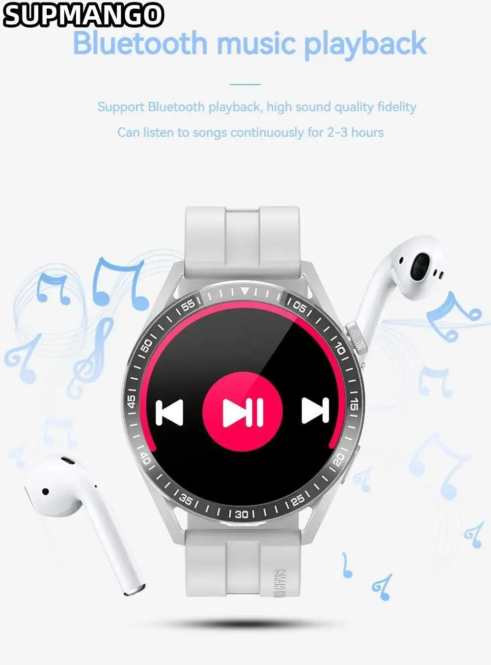 • Reproducción de música:Escuche sus canciones favoritas directamente desde el reloj, eliminando la necesidad de un reproductor de música separado.