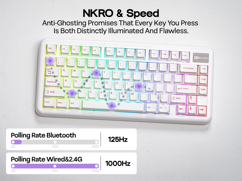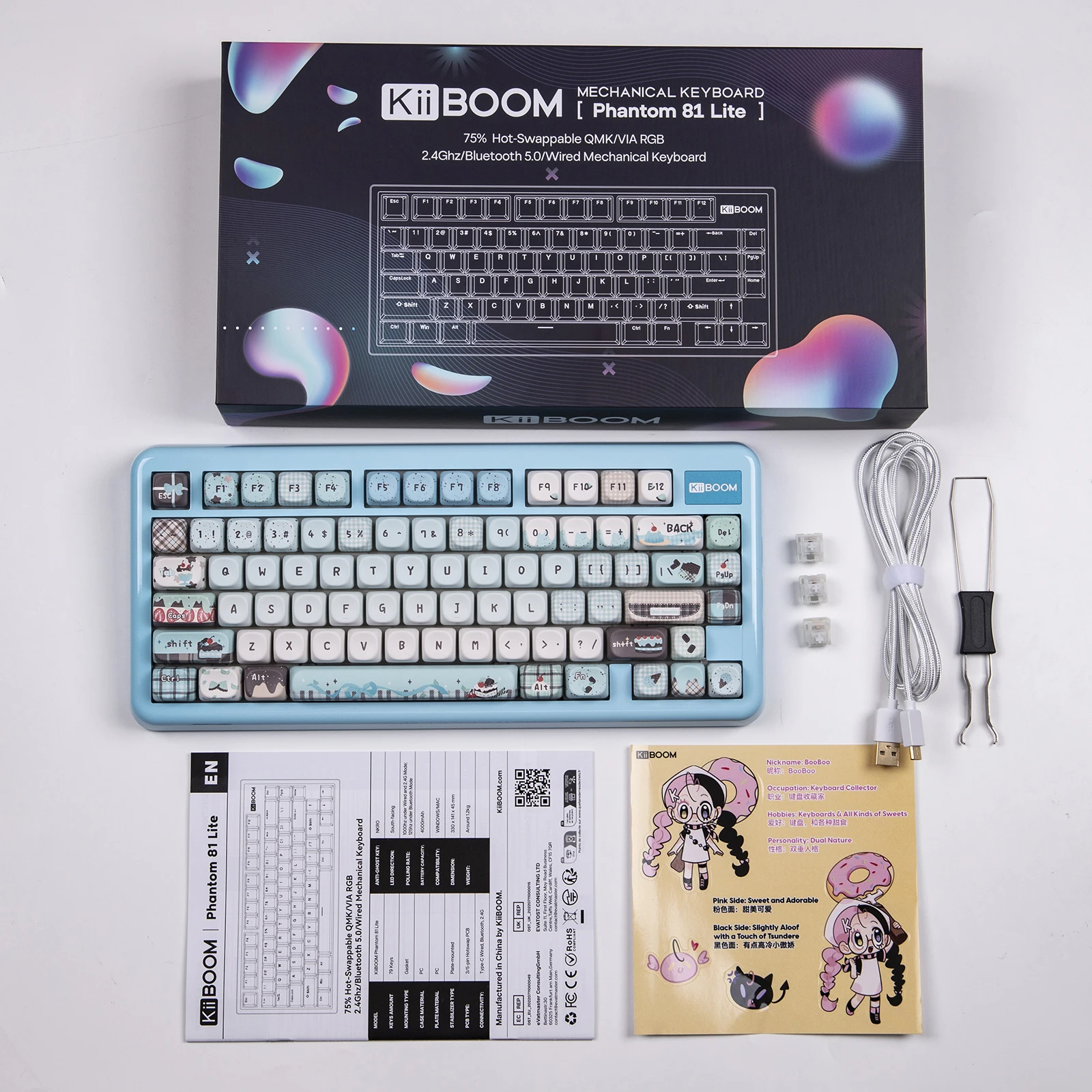 KiiBOOM Phantom81 Lite QMK/VIA Junta intercambiable en caliente del 75% Cableado/BT/2,4 GHz Teclado mecánico inalámbrico ABS Carcasa + retroiluminación RGB de tecnología UV