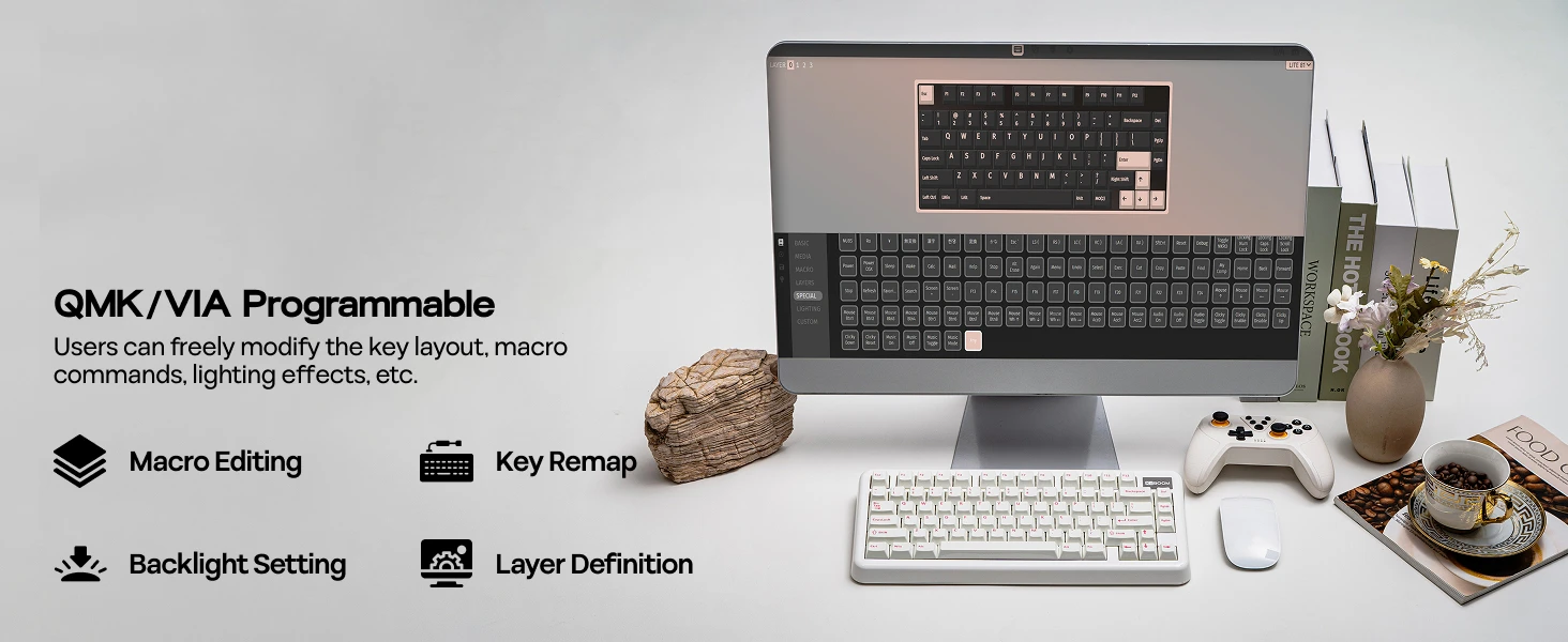 Phantom81 Lite ofrece una libertad creativa incomparable a través de su compatibilidad QMK/VIA, lo que permite a los usuarios personalizar cada efecto de iluminación clave, macro y RGB.Esto lo convierte en una opción ideal para cualquiera que busque mayor control y personalización.Los jugadores pueden crear combinaciones complejas para obtener ventajas competitivas, mientras que los programadores pueden mejorar su eficiencia asignando atajos para aplicaciones de codificación.Este teclado está diseñado para entusiastas de la tecnología, aficionados al bricolaje y personas interesadas en la productividad que requieren un dispositivo que satisfaga sus necesidades específicas.