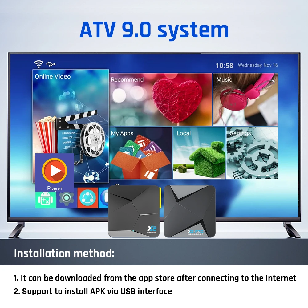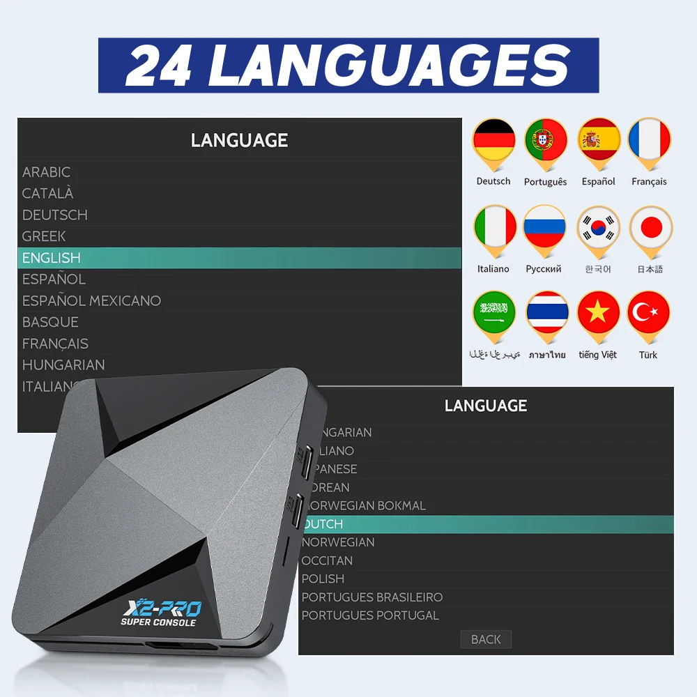 La Super Console X2 Pro es un sistema de TV tres en uno y un sistema de juegos y coreelec, que admite jugar, ver TV/películas, descargar aplicaciones y buscar información en línea.