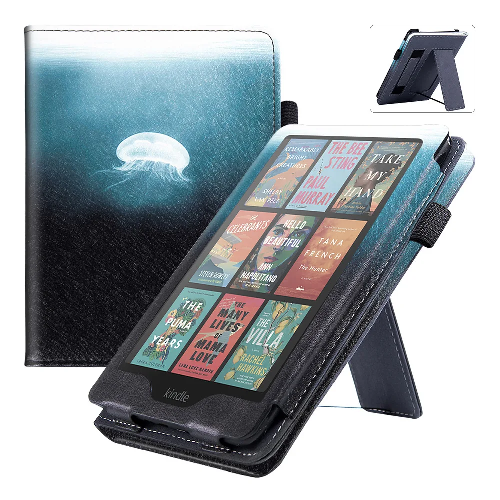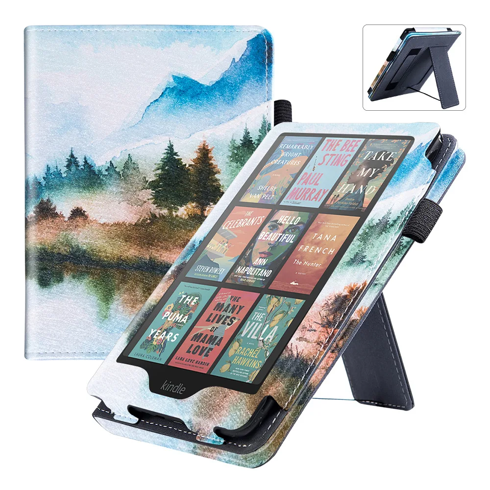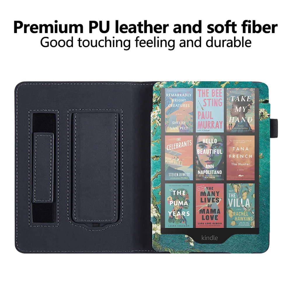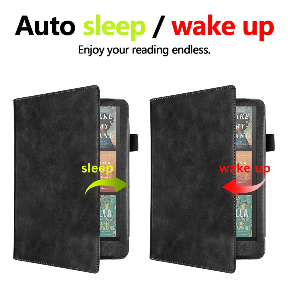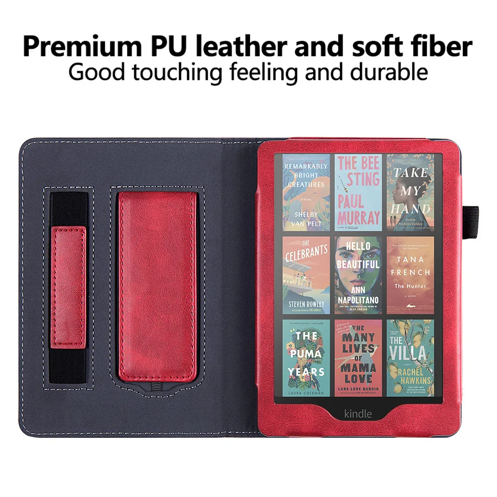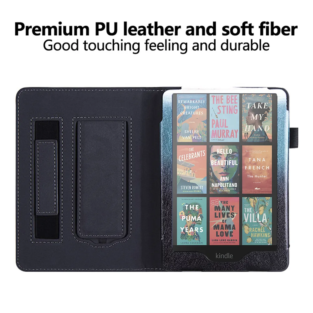 Se utilizan dos opciones: cuero PU de alta calidad y tela con patrón de tela, para satisfacer las necesidades estéticas de diferentes usuarios.La carcasa trasera está hecha de material de carcasa dura de TPU, que proporciona una excelente resistencia a golpes y caídas para garantizar la seguridad de su Kindle.