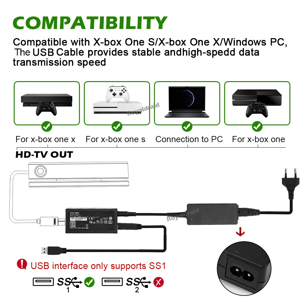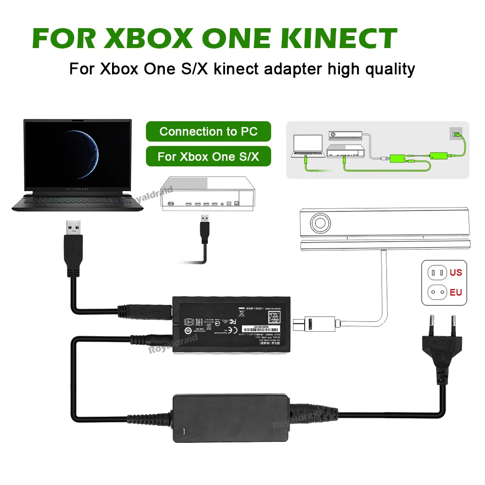 Comprar Kinect-adaptador para Xbox One, XBOX ONE S, Kinect 2,0 3,0, enchufe europeo y estadounidense, adaptador de CA USB 3,0, fuente de alimentación para XBOX ONE X PC, nuevo