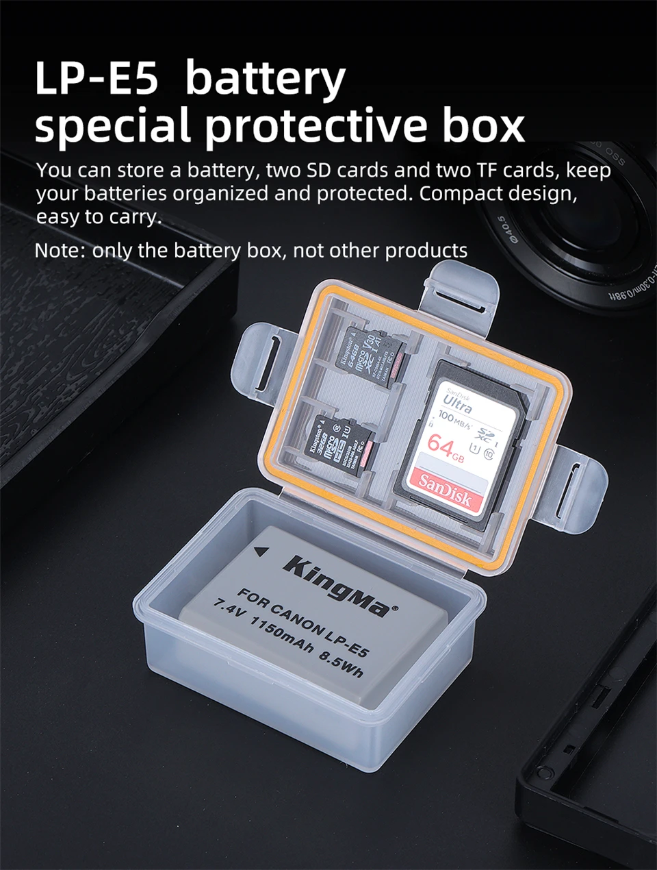 KingMa LP-E5 LPE5 batería funda de plástico caja de almacenamiento de batería para Canon EOS 450D 500D 1000D 2000D KISSX3 LP E5 batería