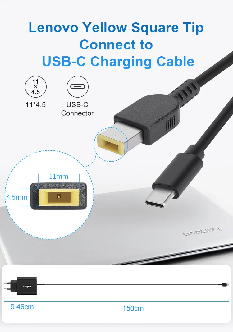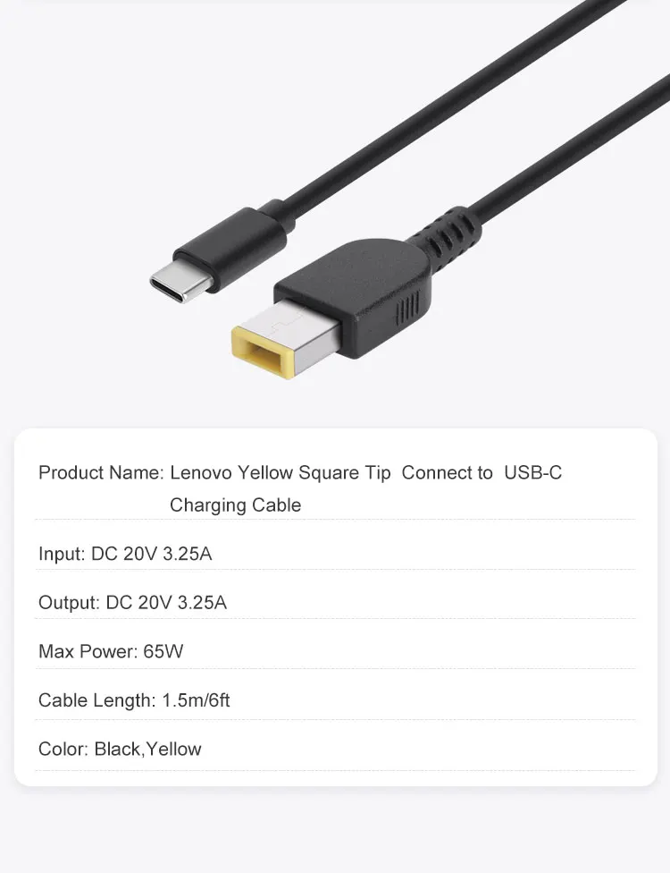 【Cable de carga de Punta amarilla cuadrada tipo-c 】 El cable de carga de 1,5 metros de largo está hecho de material de PVC blando, que puede soportar la flexión en cualquier ángulo y el desgaste diario. La apariencia elegante y el diseño de cable sin enredos le otorgan un alto valor. Conector: Punta USB cuadrada amarilla (¡no punta de carga USB C! !). Apto para computadoras portátiles Lenovo ThinkPad X1 Carbon (¡SOLO 2ª y 3ª generación!),