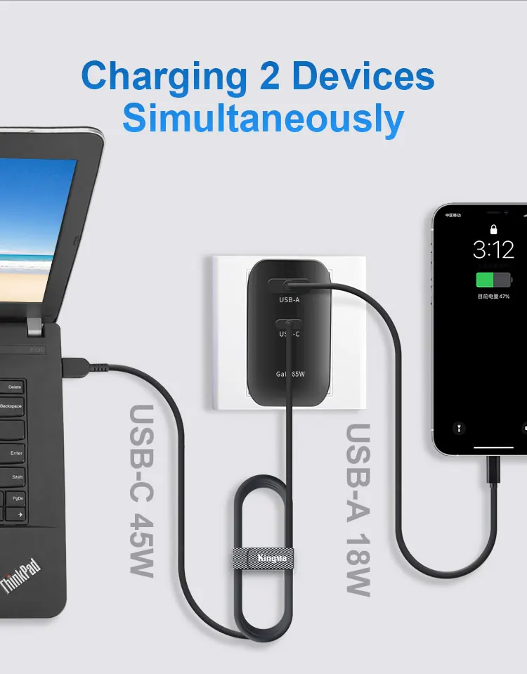 La salida de 2 puertos puede cargar simultáneamente iPad/teléfono/computadora portátil al mismo tiempo, satisfacer las necesidades de carga máxima de múltiples escenarios y dispositivos.