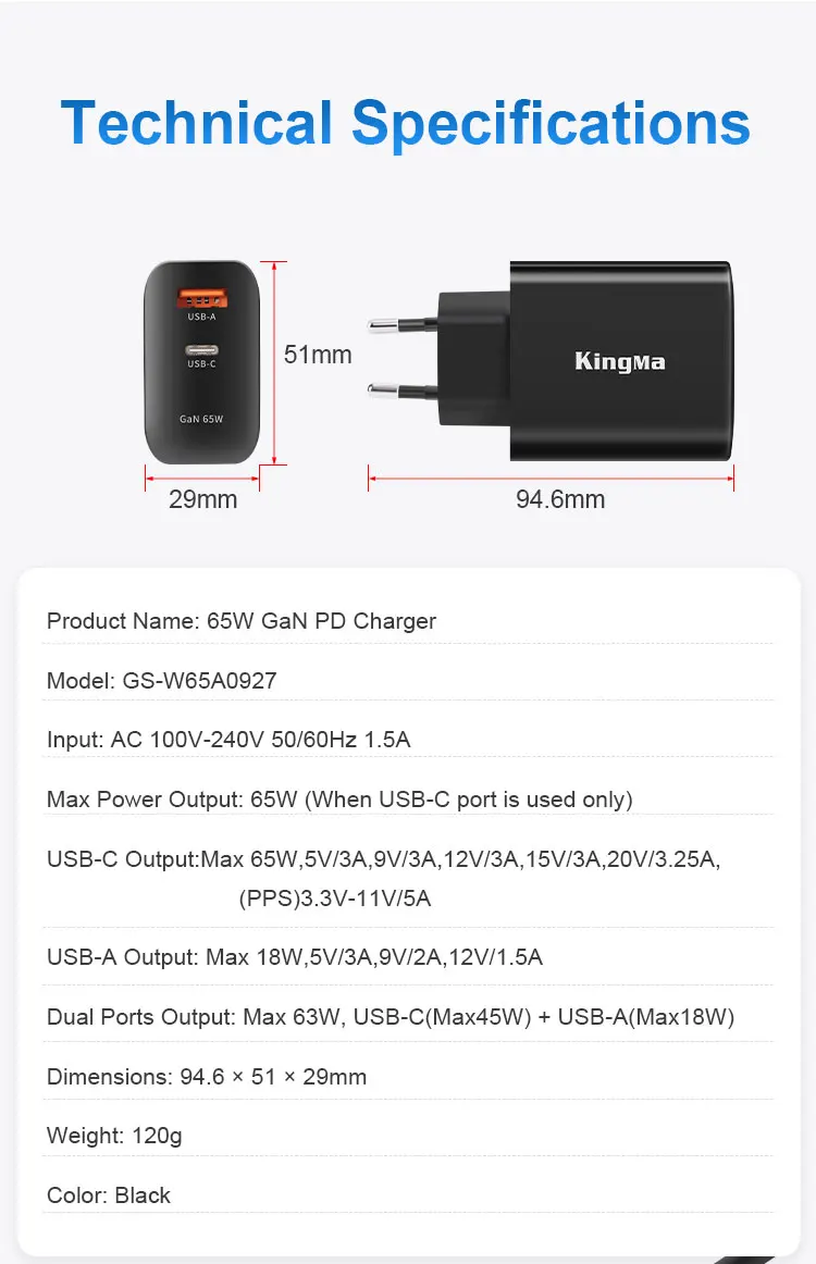 【 Cargador de pared de carga rápida de la batería de carga rápida de los dispositivos habilitados USB PD de 65W de potencia máxima, desde portátiles más nuevos hasta tabletas y teléfonos inteligentes. Un cargador resuelve los problemas de carga de sus múltiples dispositivos, y tiene una excelente seguridad con múltiples protecciones, y también se puede sacar con usted, lo cual es fácil y conveniente