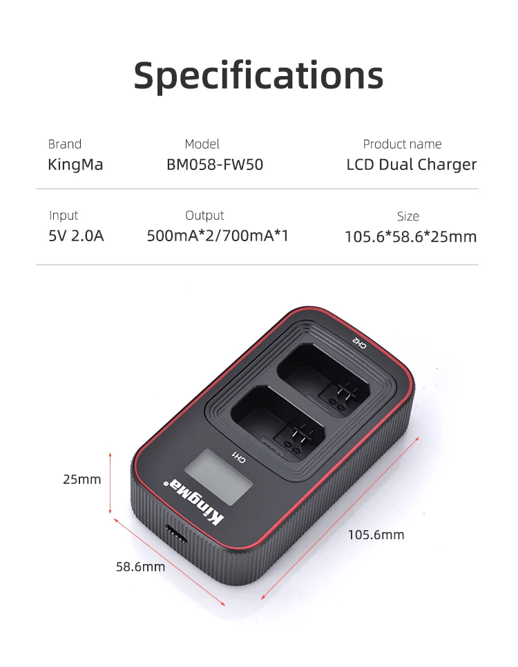 KingMa-Cargador USB Dual para Sony A7 A7II A7S A7R A7RII A3000 A5000 A5100 A6000 A6300 A6500 RX10M2 /5/5N/5R/5T/6/7/C3/F3