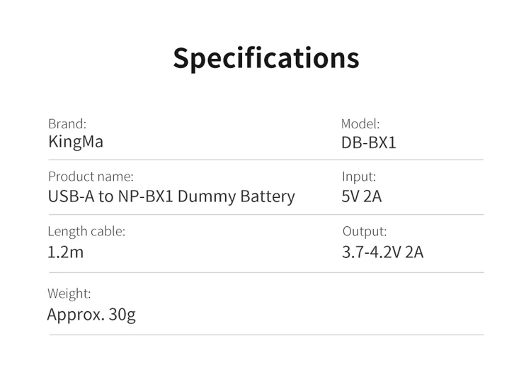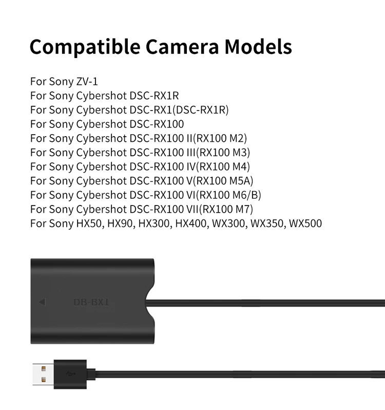 Comprar KingMa NP-BX1 batería simulada con adaptador de corriente USB-A acoplador CC para cámara Sony ZV-1 RX100 M7 M6 M5 RX1R HX50 HX90 HX300 HX400