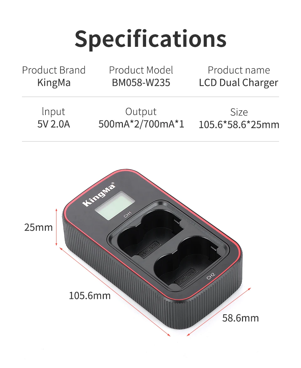 KingMa NP-W235 Rechargeable Battery USB LCD Dual Charger Kit For Fujifilm GFX50SII 100S X-T4 XT4 Camera NP W235 Battery Charger