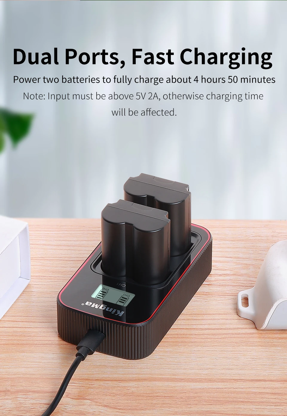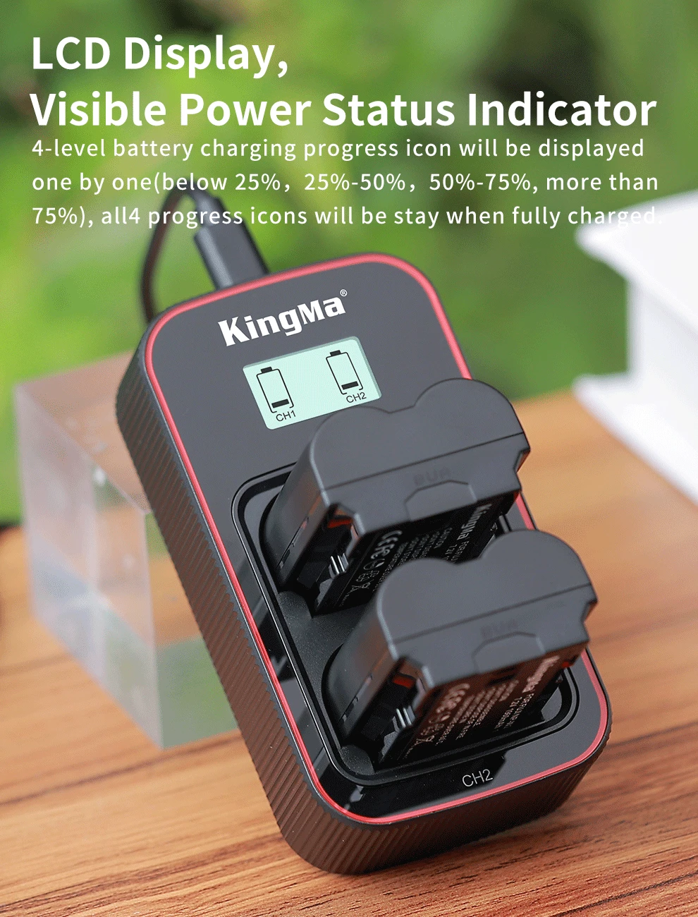 The dual charger with LCD display allows users to easily check the power status
