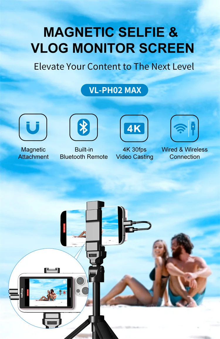 Comprar Kingma PH02 Max palo de Selfie magnético Selfie transmisión en vivo Vlog pantalla foto Control remoto inalámbrico Monitor de Selfie